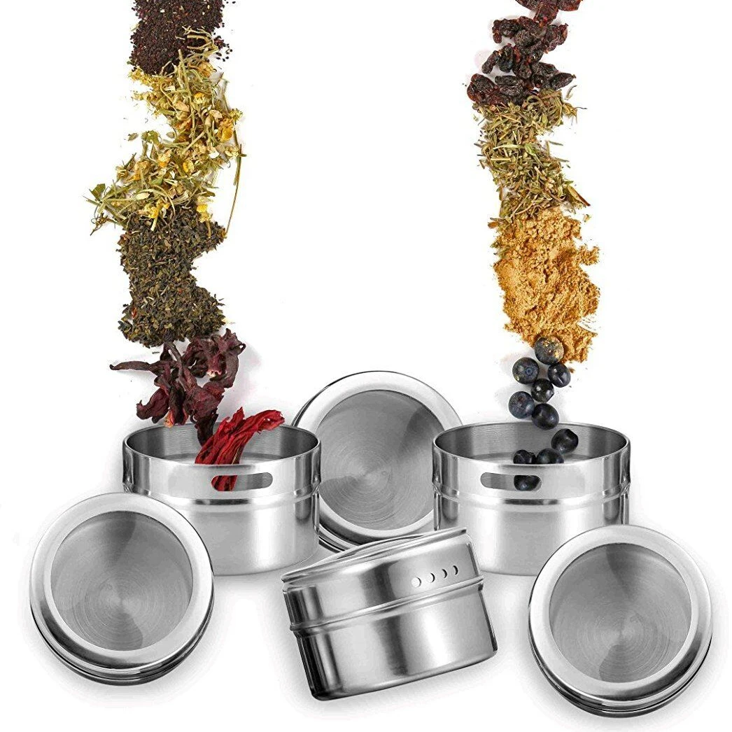 Особенности: * 100% новый и высокое качество * Простота в эксплуатации, безопасность и надежность. * Необходимо иметь на кухне. * Тип товара: Магнитные Банки для специй * Материал: нержавеющая сталь * Цвет: как показано * Подходит для: соли, приправ, перца и т. д. * Размеры: 6,2*4,3 см * Вес: около 100 г для 1 шт. Посылка включает в себя: 1 Магнитный Набор банок для специй