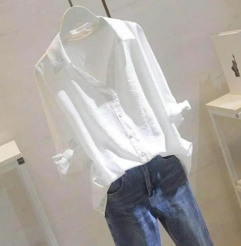 Женская винтажная блузка с длинным рукавом и V-образным вырезом | одежда