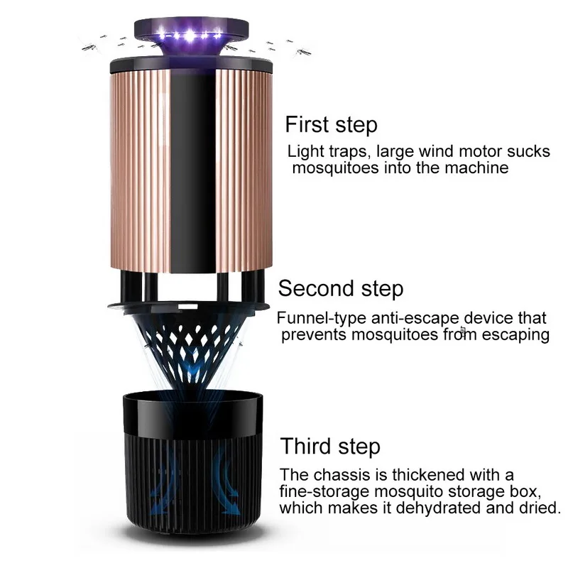 ** Коробка для хранения: нижняя коробка для хранения комаров собирает тело мертвых комаров. Легко снимается для очистки.