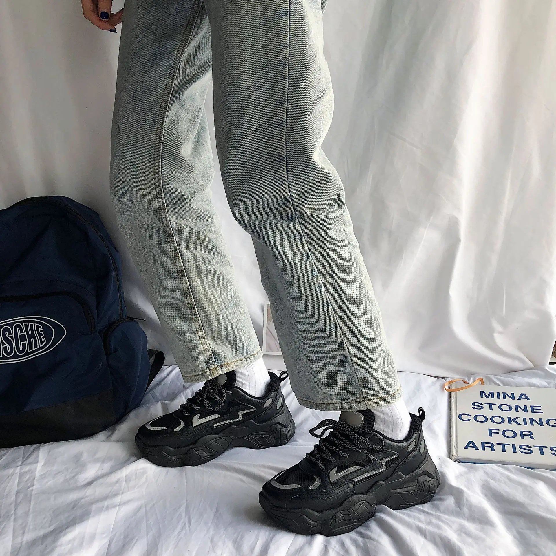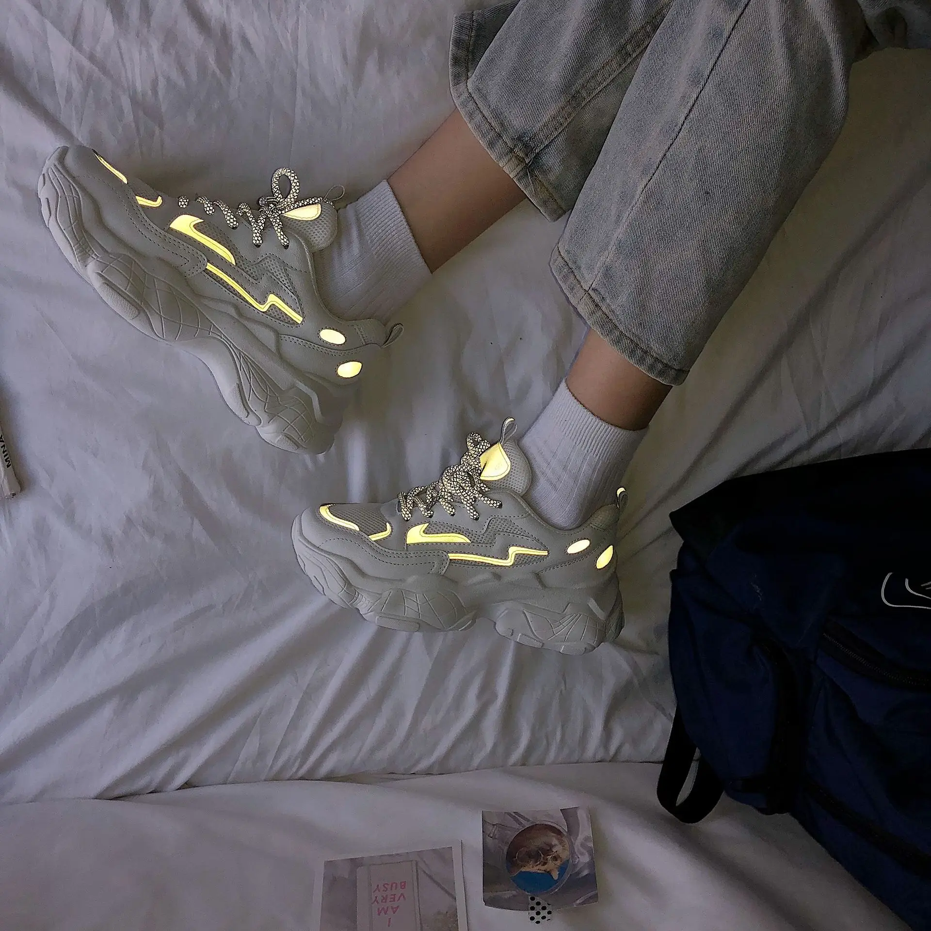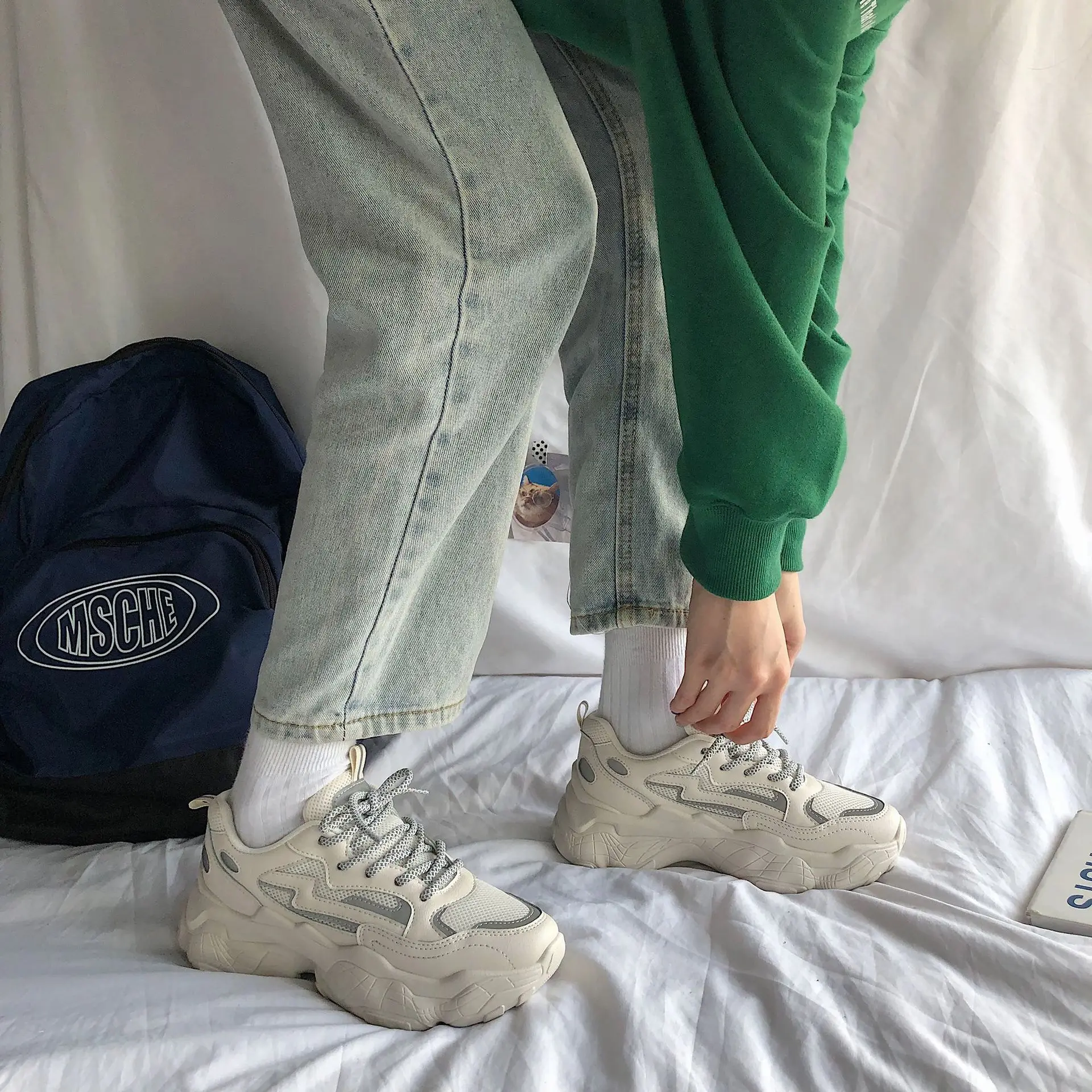 Женские кроссовки на шнуровке Нескользящие плоской вулканизированной подошве