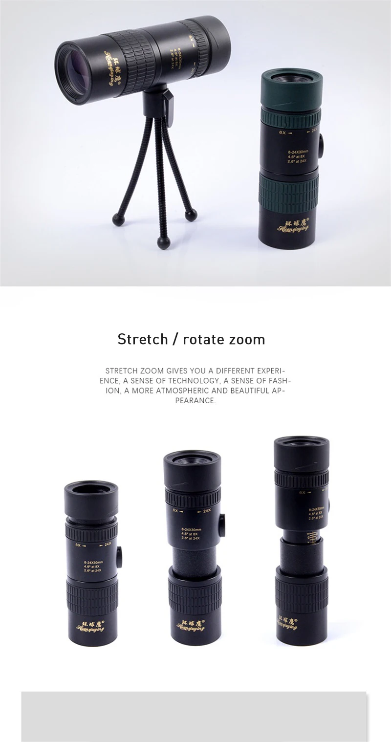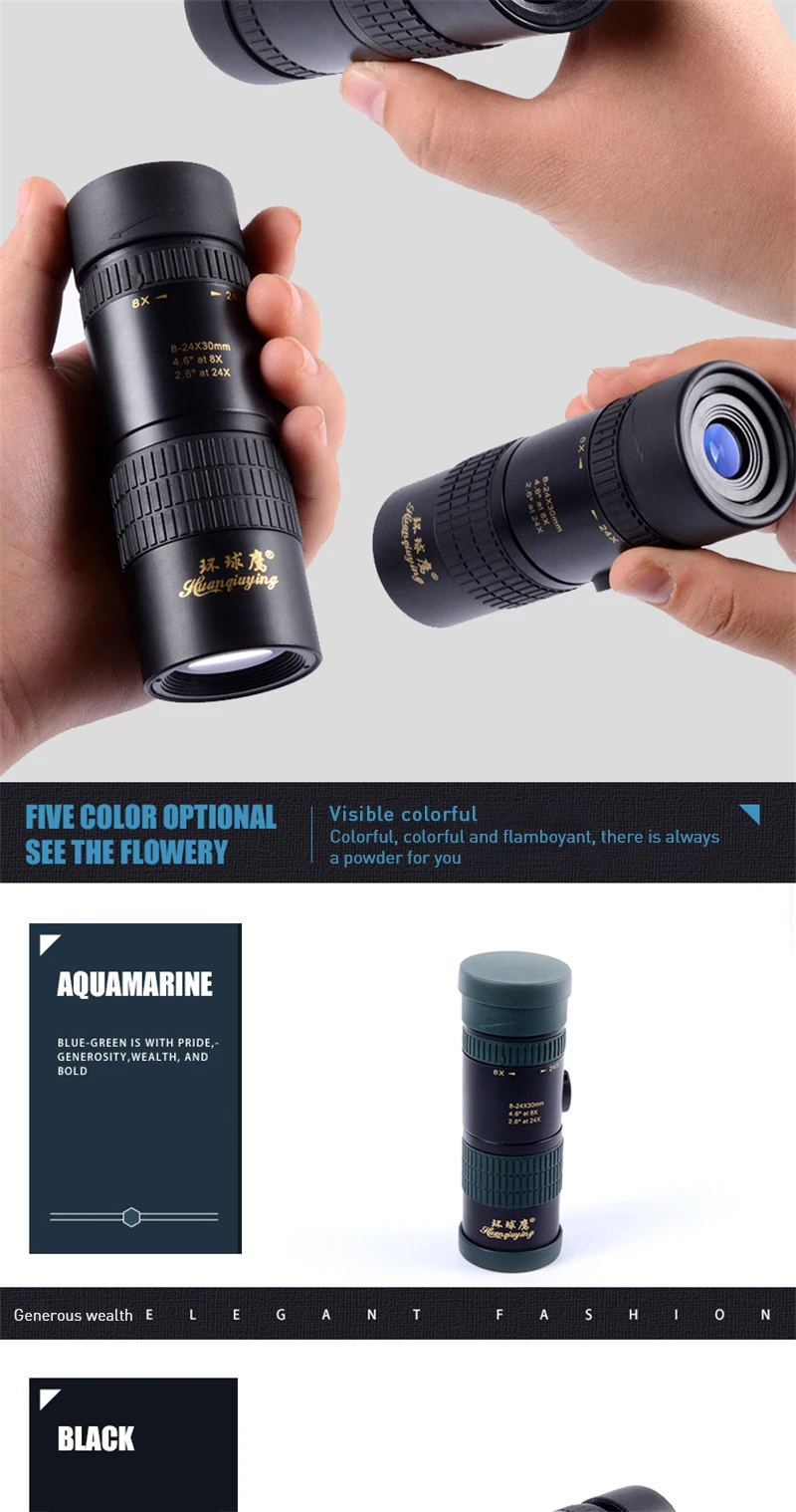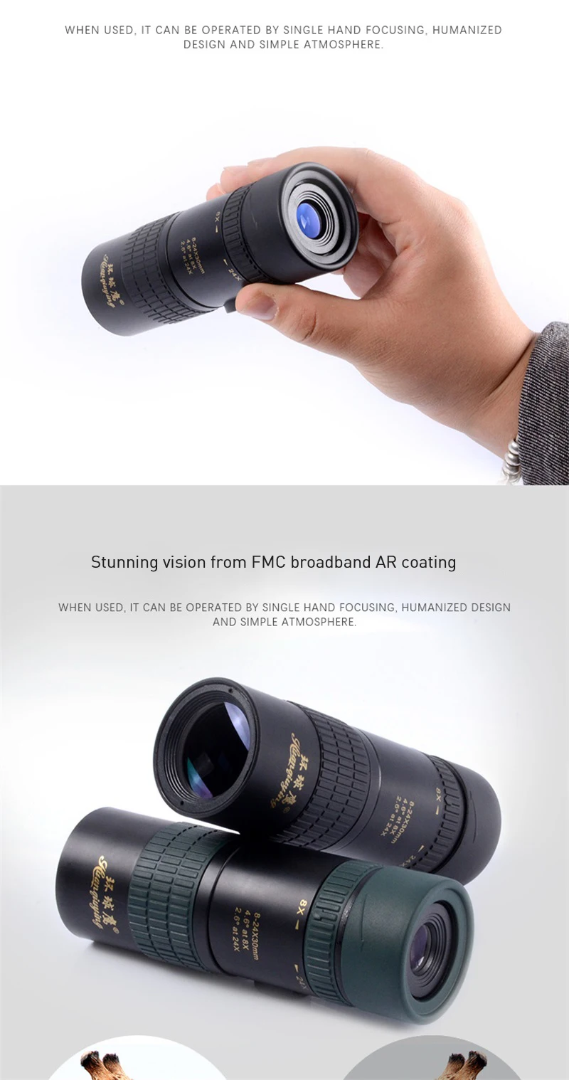 Модель: 8-24x30 Инструмент Увеличение: 8-24X Структура: Монокуляры Тип функции: зум-телескоп Диаметр окуляра: 15 мм Диаметр объекта: 30 мм Ангел: 2,6 °-4,6 ° Поле зрения: 45,5-80,5 м/1000 м Диаметр выходного зрачка: 1,2-1,7 мм Расстояние выходного зрачка: 17-14 мм Ближайший Фокусное расстояние: 3 м Призма: BAK4 Покрытие объектива: FMC полная широкополосная зеленая пленка Метод фокусировки: Центральная вращающаяся фокусировка Подставка в виде штатива: Да Продукт Размеры: 12.7x4.4x4.4cm Вес изделия: 0,16 кг