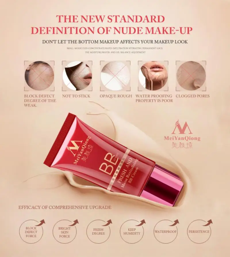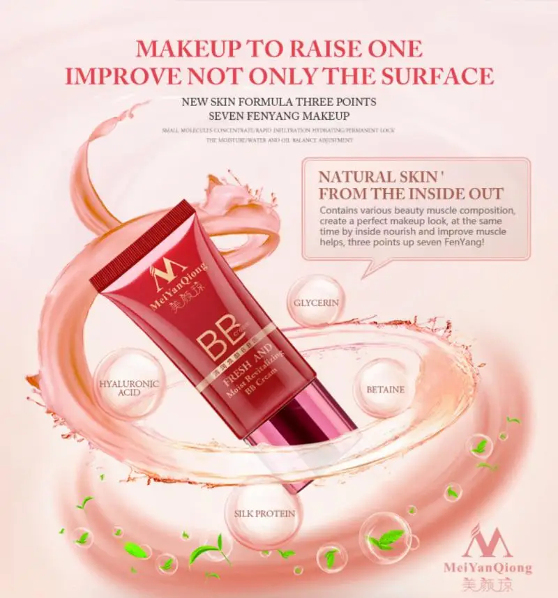 Применение: Используйте после восстановления основной кожи, нанесите количество MeiYanQiong BB крем на лицо, а затем нажмите плотно прилегающую кожу.