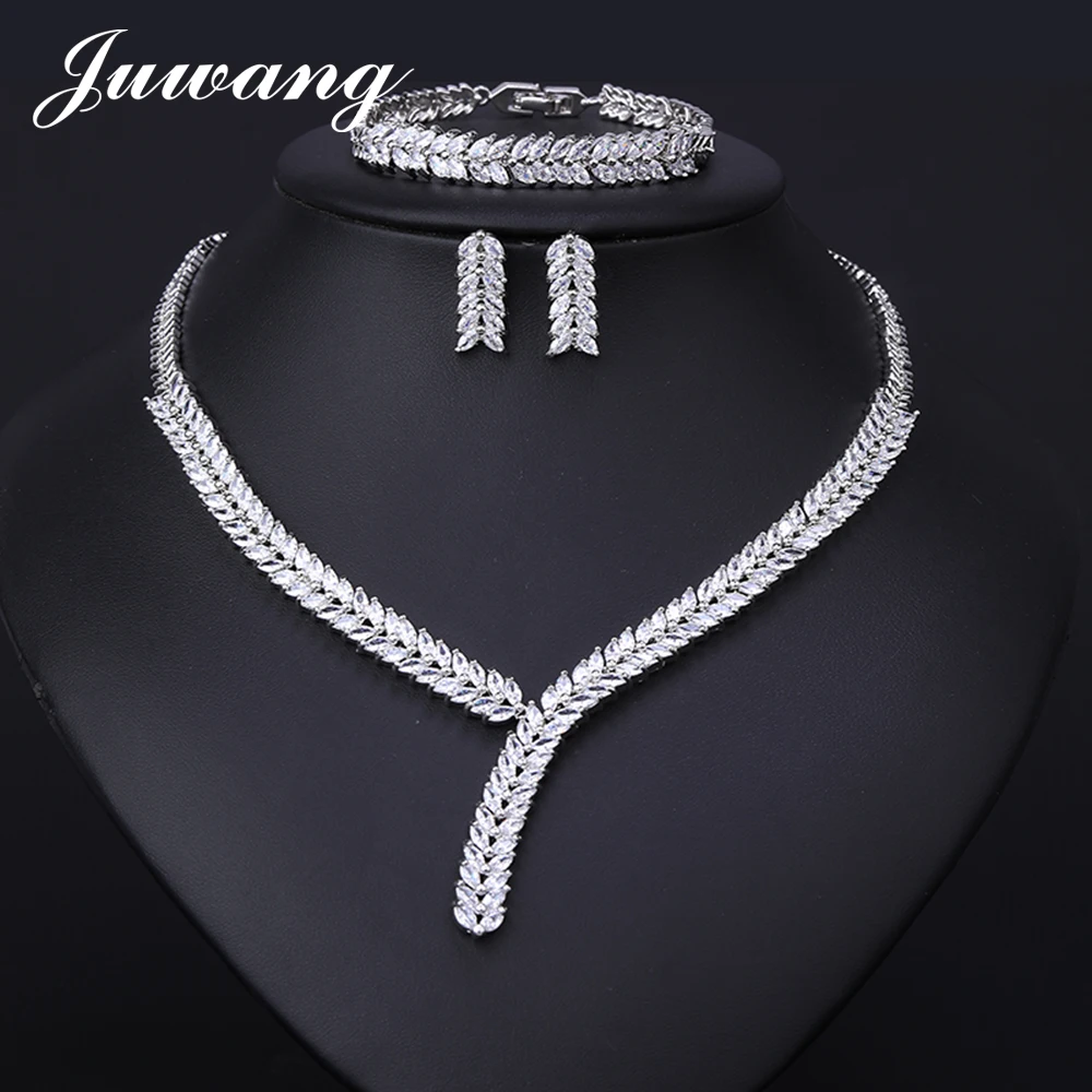 Женские свадебные комплекты ювелирных изделий JUWANG, сережки с кубическим цирконием, вечерние аксессуары для платья Бренд: JUWANG