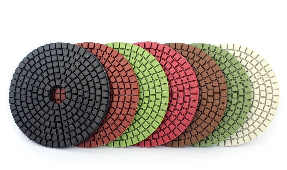 4 "Влажные Алмазные полировальные колодки предназначены для полировки бетонных поверхностей, Бетонного Пола, бетонной столешницы, пола терраццо, кварцевых каменных гранитных прилавков. Выдающаяся отделка на травертиновом полу, мраморном полу и столешнице, полировка краев столешницы, полировка стекла