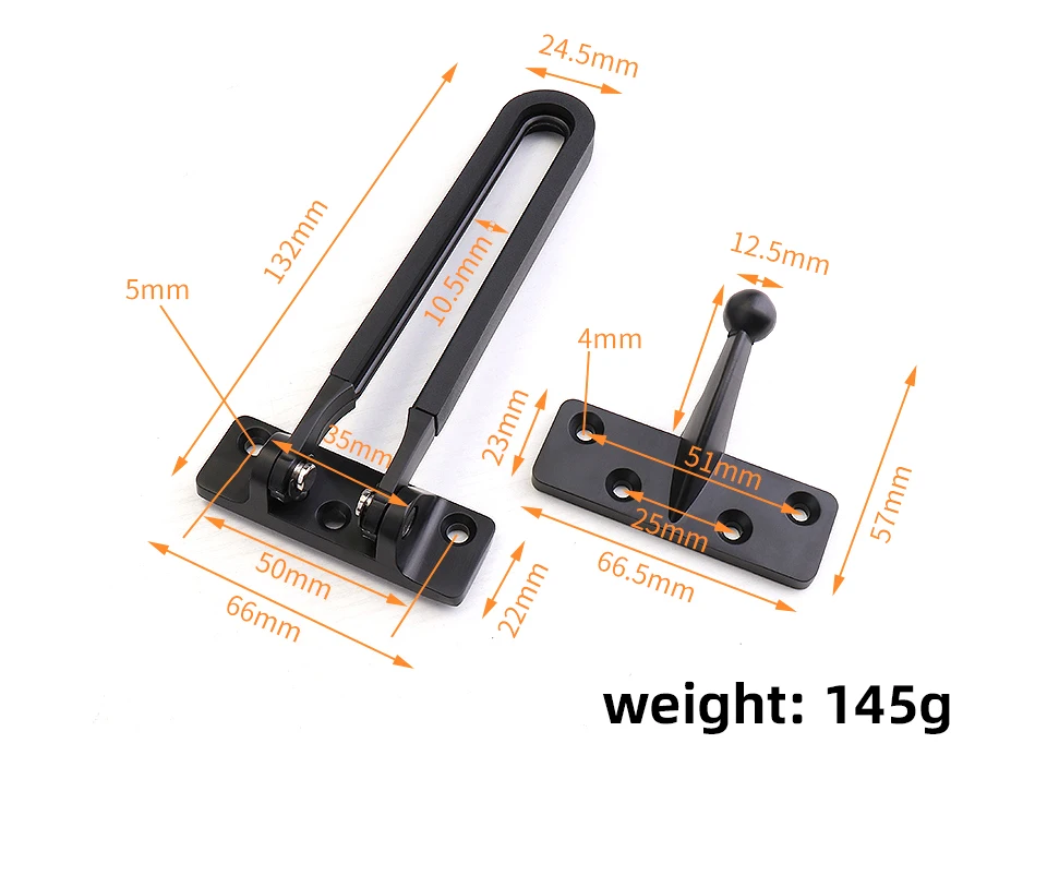 Бренд BETOCI 100% высокое качество Идеальная работа, не ржавеет Цинковый сплав, антикоррозийный, прочный. Обеспечивает дополнительную безопасность на дверях жилых домов и квартир Замок для двери дома, двери отеля, шкафа, ящика, мебели и т. д. Изготовлен из высококачественного цинкового сплава, обеспечивающего долговечность и надежность Артикул: BTS-010 Тип замка: замок-защелка/Противоугонная застежка Материал: цинковый сплав Размер: 66 мм (2,59 дюйма) * 132 мм (5,19 дюйма)