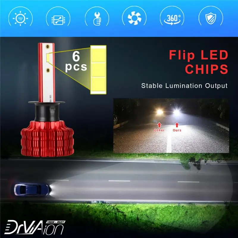 Лучшая видимость: Удалите ваши тусклые желтые галогенные лампы и сделайте путь для супер-сфокусированных 6500K ярких белых фар. Светодиодный светильник дневного света H1 позволит вам видеть более четкое изображение для более безопасного вождения