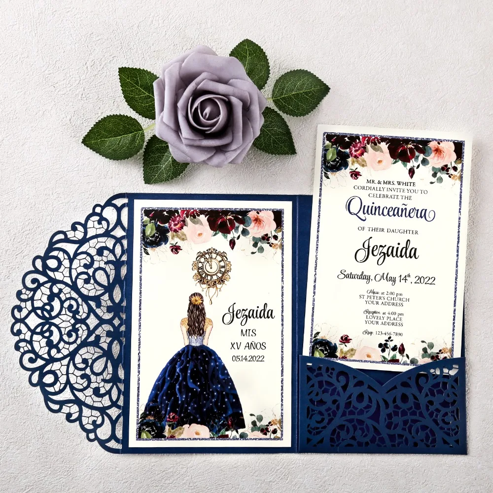 1 шт. свадебные приглашения 4 цвета Блестящий лазерный вырез полые приглашения карманы для свадьбы, Quinceanera, вечерниеРисунок:Лазерная резка