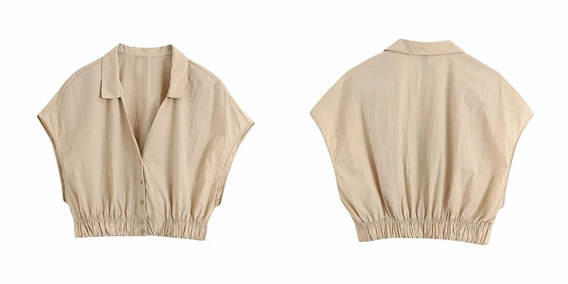 2020 Женская мода Хаки za без рукавов короткая блузка feamel Лето однобортное пальто с v-образным вырезом эластичные футболки femme