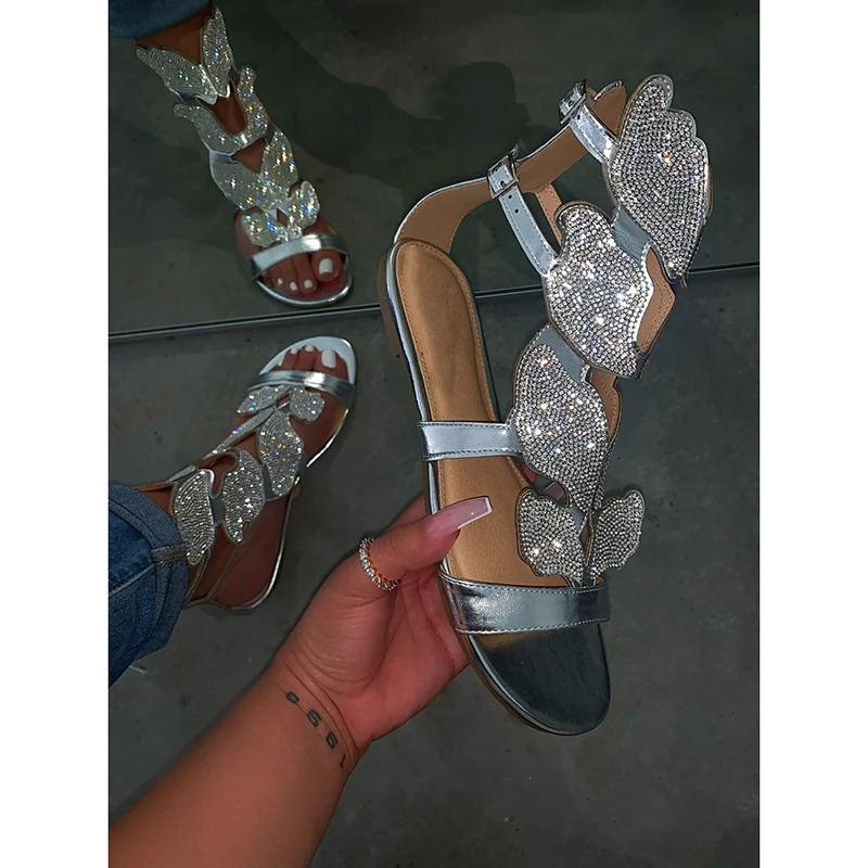 1 пара женских сандалий на плоской подошве