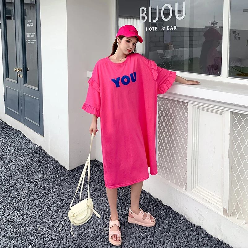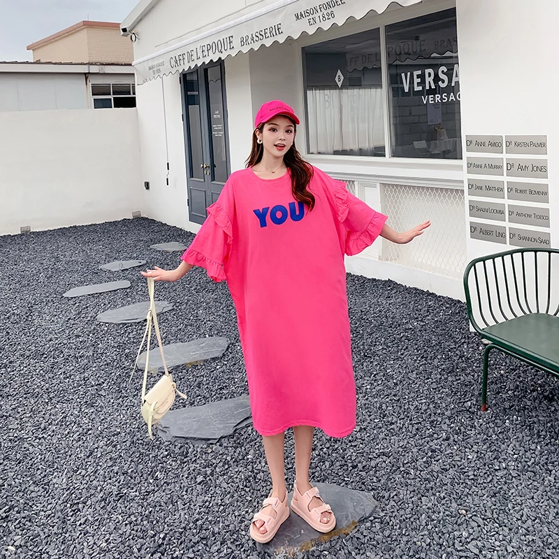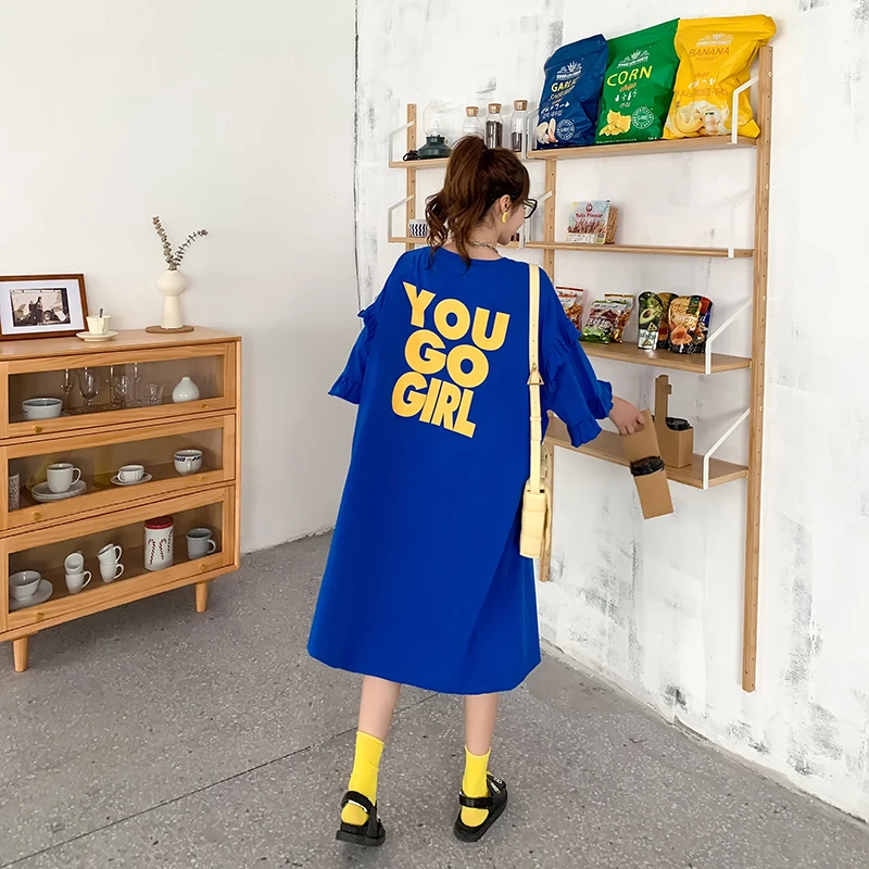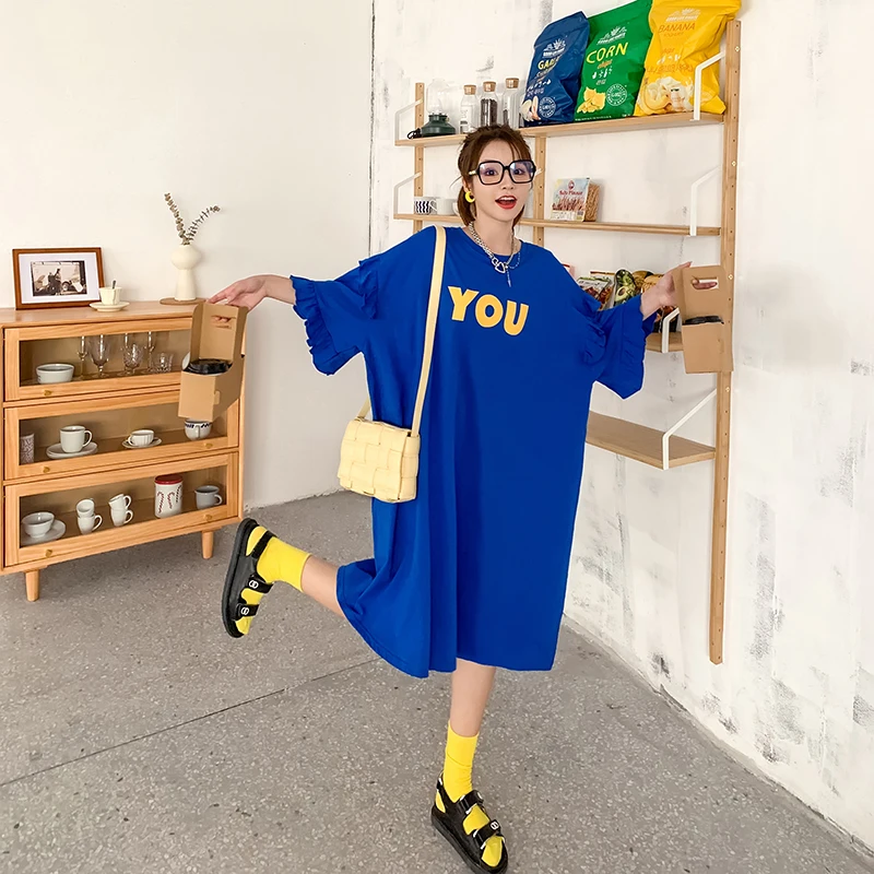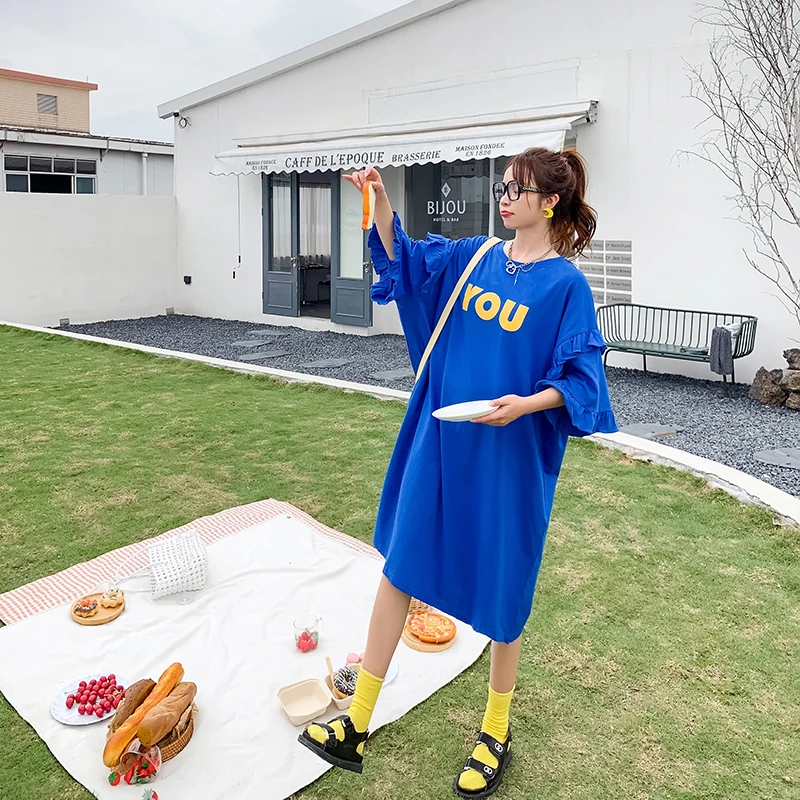 QING MO синее красное женское платье с буквенным принтом 2020 летнее женское платье с расклешенными рукавами