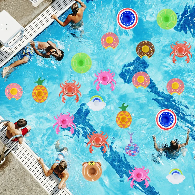 Надувной подстаканник для бассейна, поплавок для бассейна, игрушечная подстаканница для бара, летние вечерние украшения для бассейна, держатель для напитков с фруктами и животными