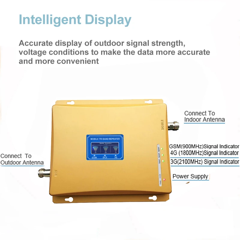 [1] покрытие: 300-500 квадратных метров без ограничения! [2] улучшить Gsm 900 Lte 1800 и Wcdma 2100 в одно и то же время [3] Поддержка более чем 20 сотовые телефоны для того, чтобы использовать в одно и то же время [4] Поддержка разных операторов, которая имеет GSM 900 1800 или WCDMA 2100 Частотный диапазон [5] легко установить. Этот набор повторителей включает в себя все необходимое. [6] светодиодный сигнальный светильник показывает состояние сигнала. [7] Один годовая гарантия