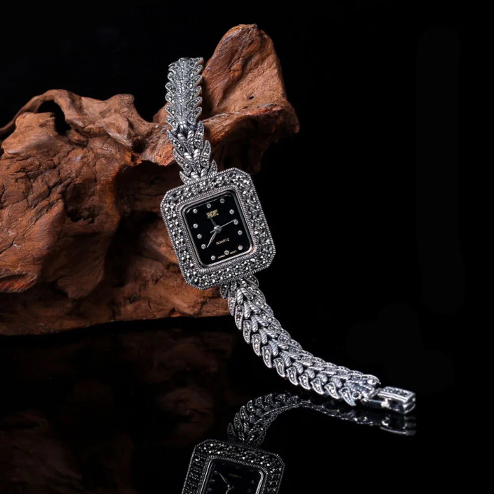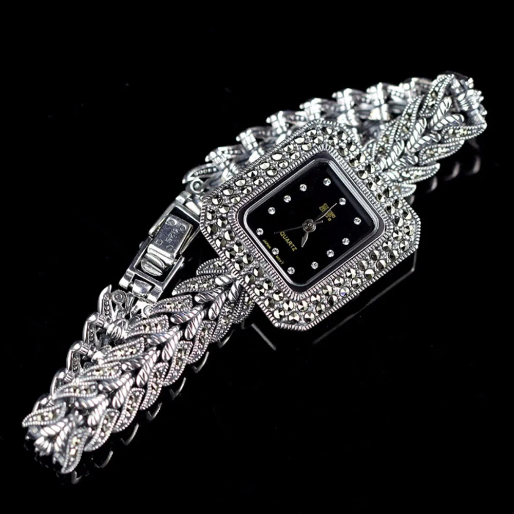 Этот товар-100% из стерлингового серебра 925 пробы. Ремешок для часов, чехол для часов изготовлен из 925 пробы серебра Окружность составляет 18 см. Лицевая сторона часов Ширина: 2,5 см. Общий вес: около 38 г Механизм: японский кварц Этот 925 пробы серебряный подлинный драгоценный камень Marcasite Watche может стать очень ценным подарком для: Рождества, Дня матери, Дня Святого Валентина, дня рождения или любого другого особенного дня или особенного человека