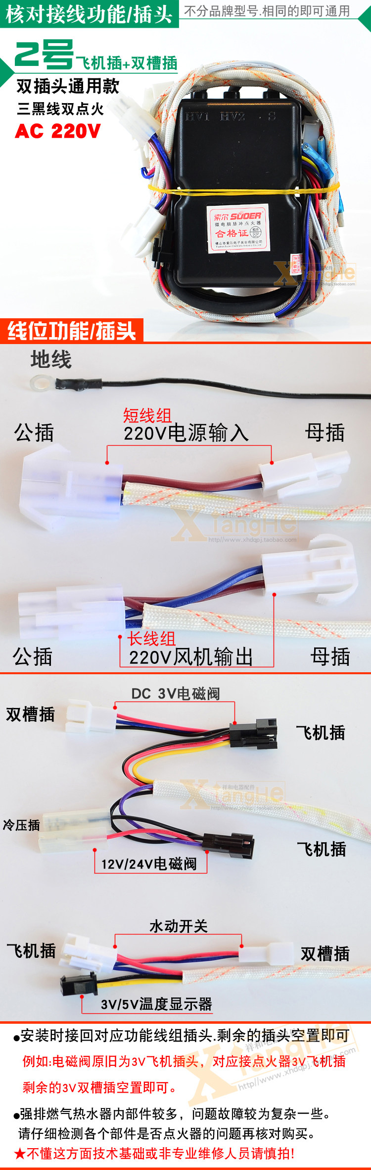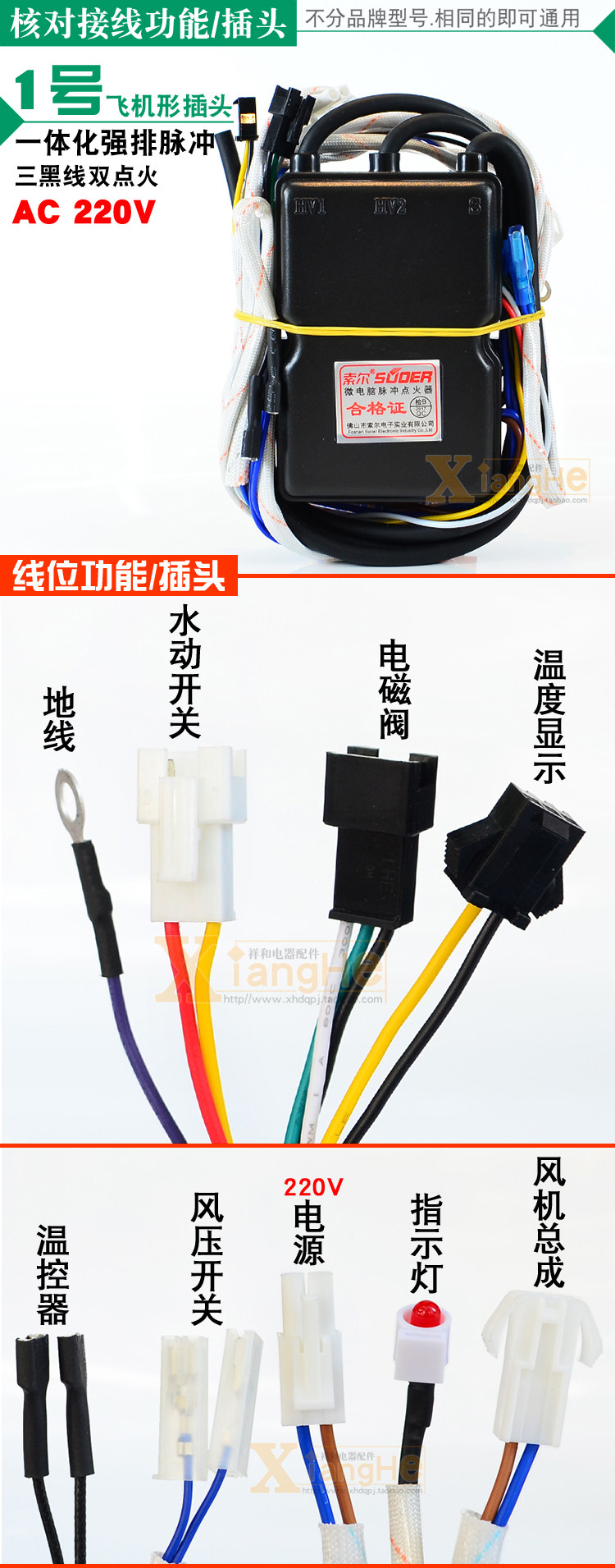 Модель 1: Встроенный пульс (разъем для самолета) Модель 2: разъем для самолета + двойной разъем (два разъема универсальные) Модель 3: Split pulse (разъем для самолета) Модель 4: DKG2 (двойной разъем) Дымоход сильный выхлопной Газ водонагреватель импульсный воспламенитель аксессуары AC220V двойное зажигание Высокое напряжение зажигалка Воспламенитель-одна цена (без выключателя, соленоидного клапана и других аксессуаров)