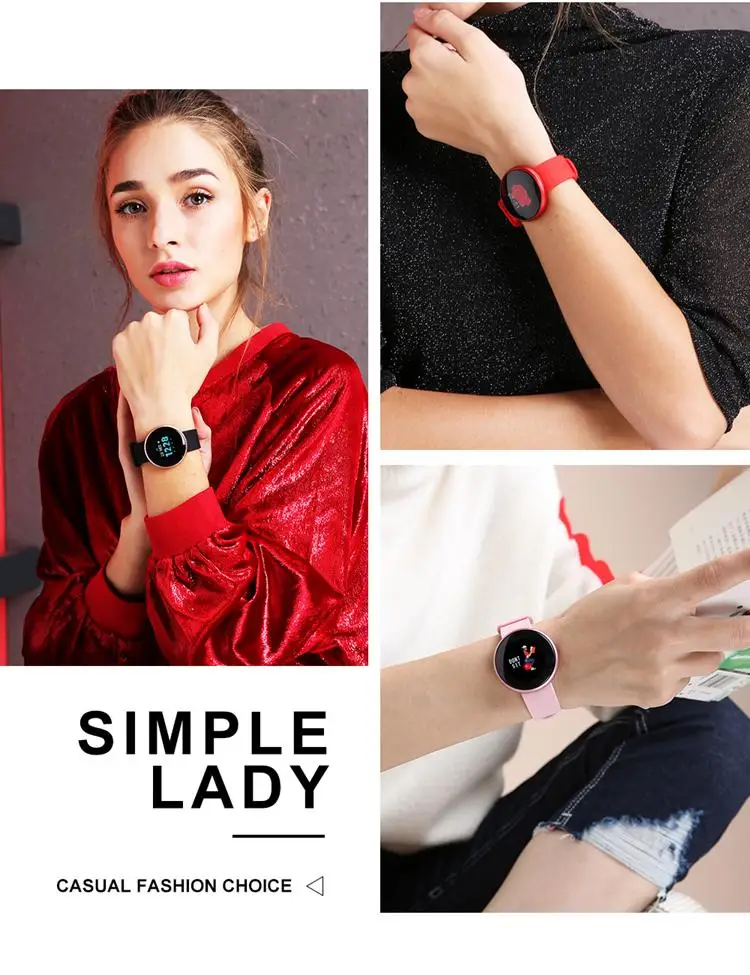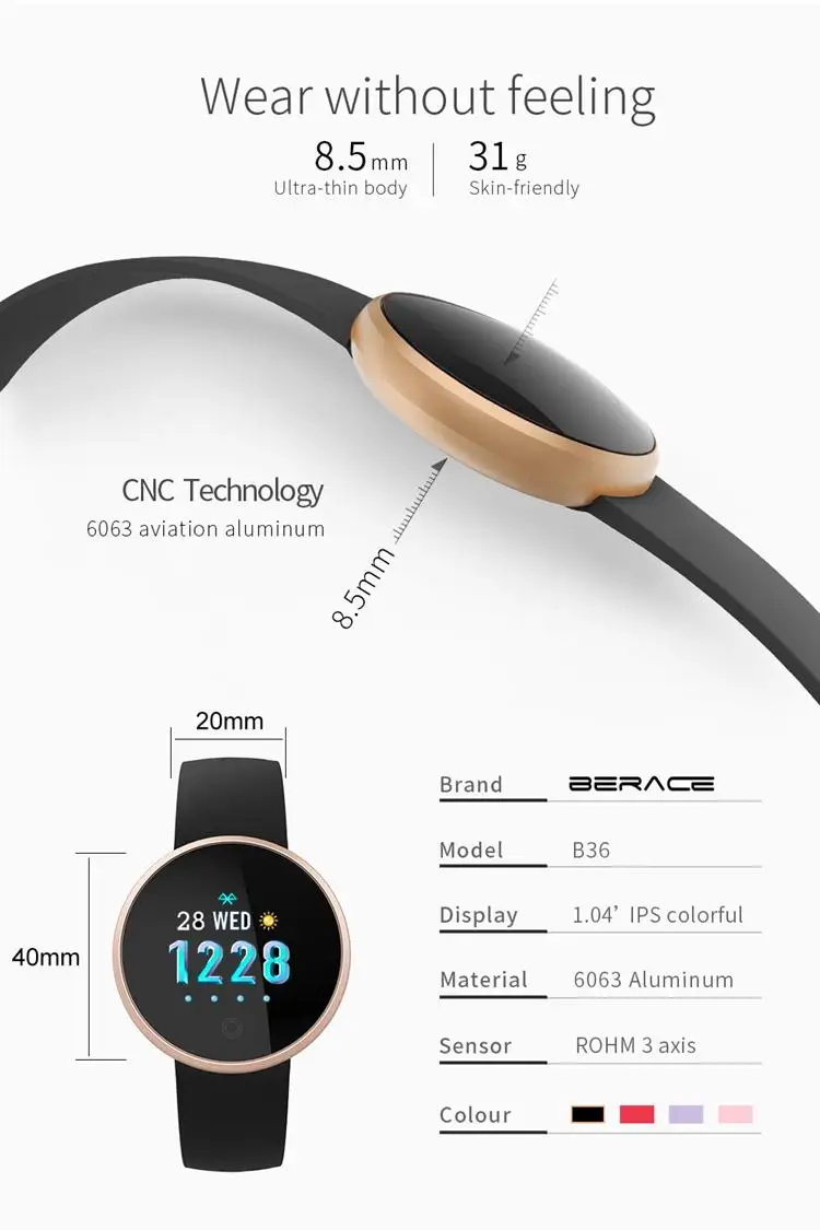 Характеристики часов: обнаружение частоты сердечных сокращений, обнаружение износа, регулировка яркости экрана, умное напоминание, бесшумный будильник,Женский умный Браслет для контроля сердечного ритма