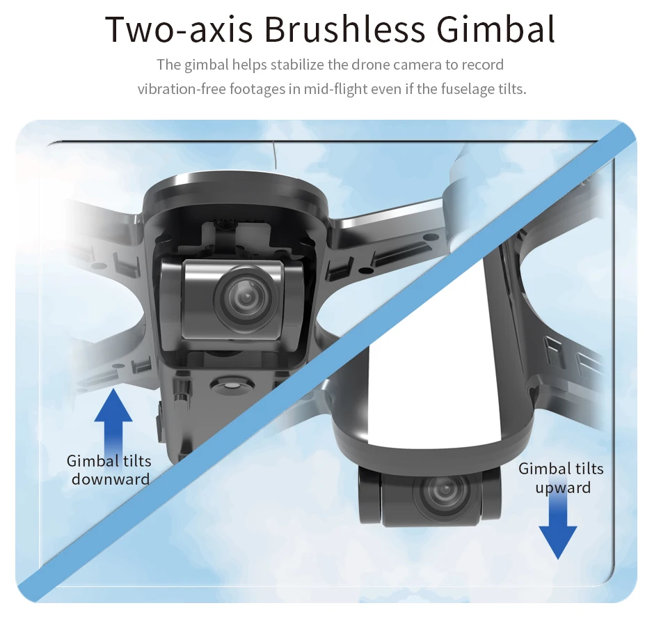 Он оснащен камерой 4K, видео и фотографиями 4K, настроен удивительно, чтобы запечатлеть фотографии и видео с неба, а также с двухосным бесщеточным карданом, помогая дрону записывать бесвибрационные ступни.