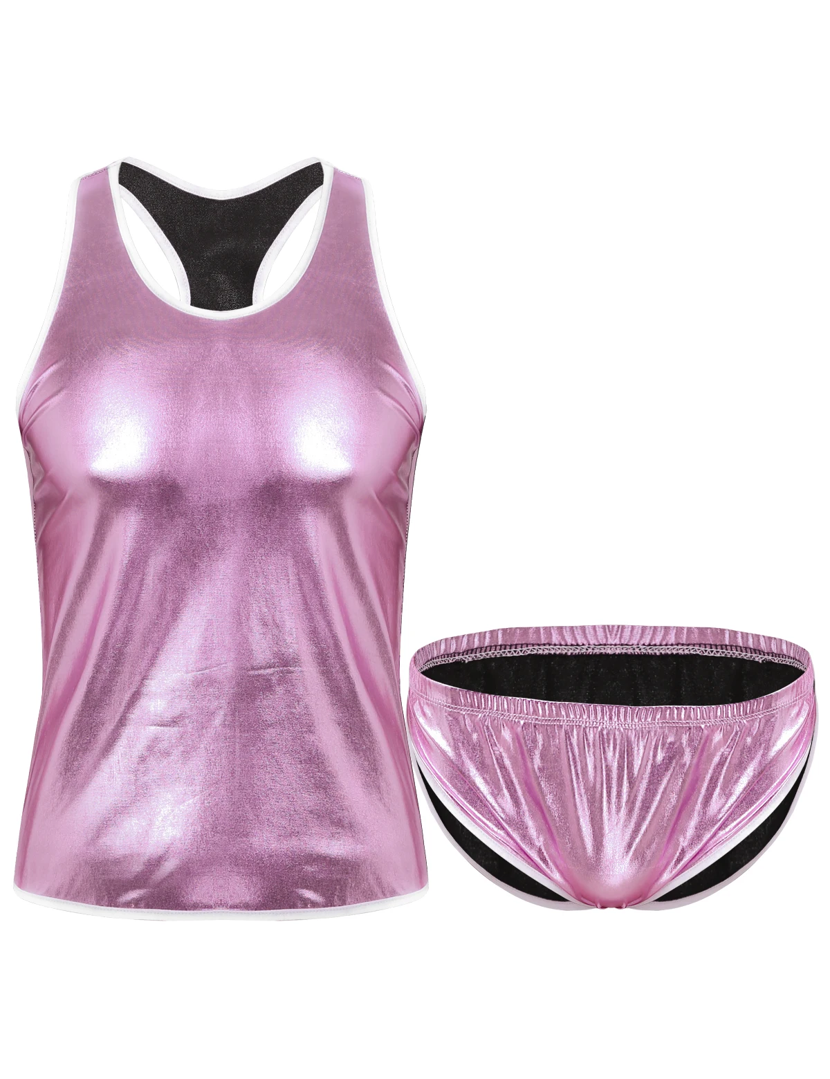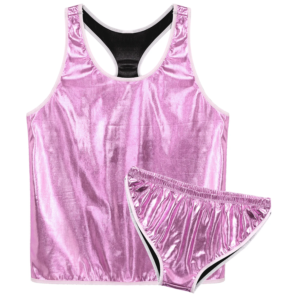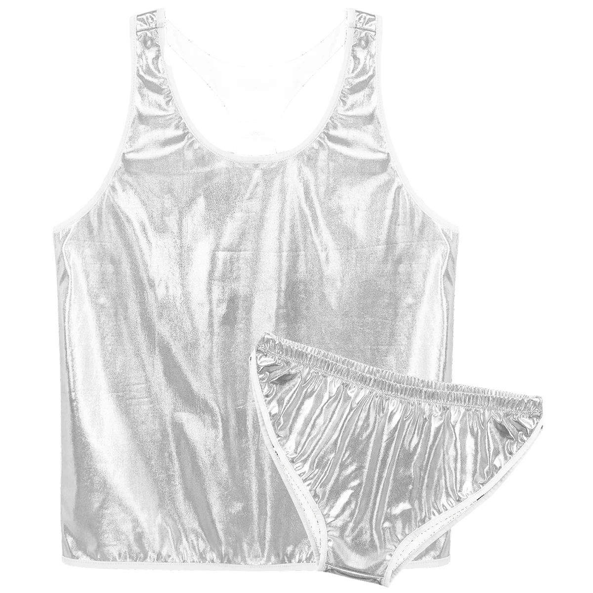 Мужской Блестящий металлический комплект нижнего белья для ночного белья, Клубная одежда, глянцевый внешний вид, застежка-липучка.
