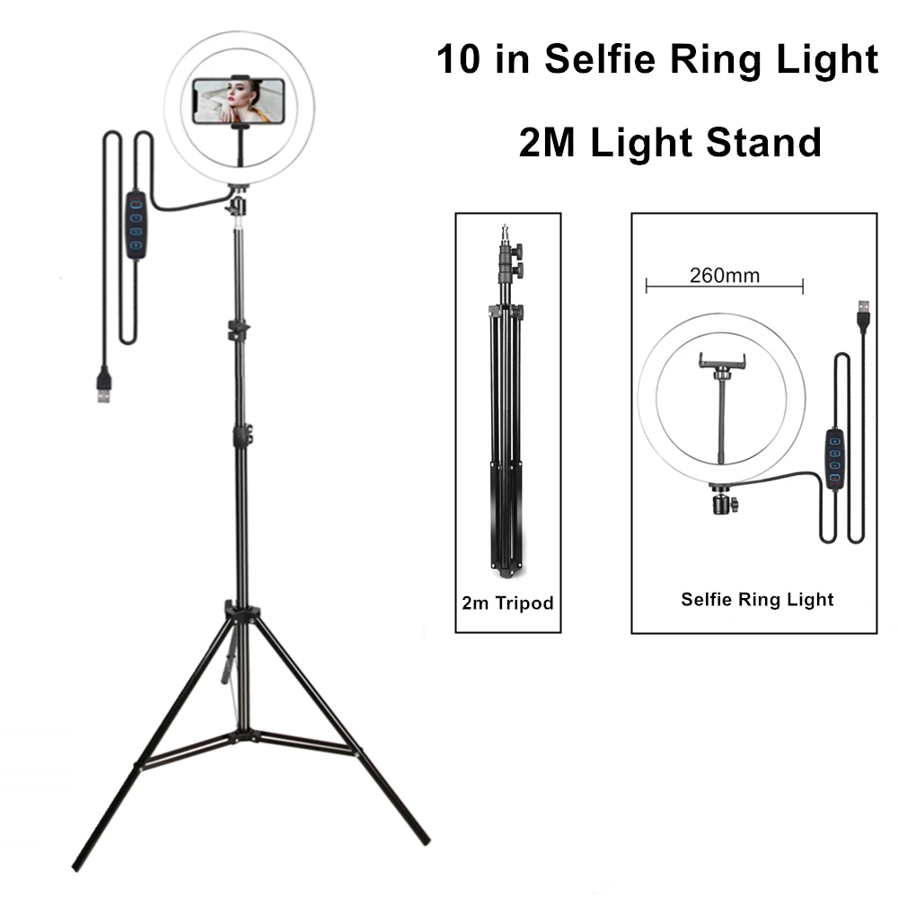 Светильник, кольцевой светильник, светодиодный светильник для селфи, для фотосъемки, 2 м, 200 см, штатив с лампой, 10 дюймов, светильник для телефона, Live Studio Youtube