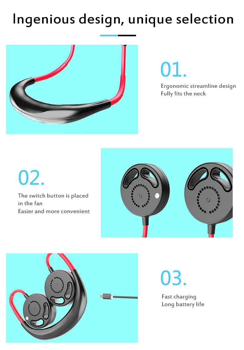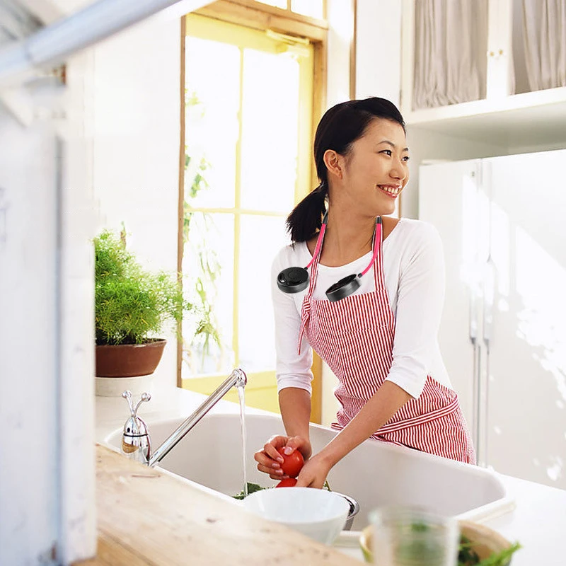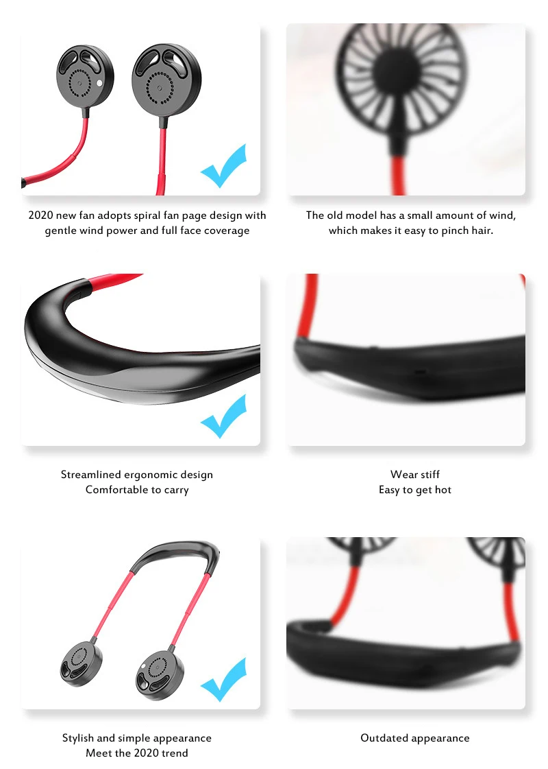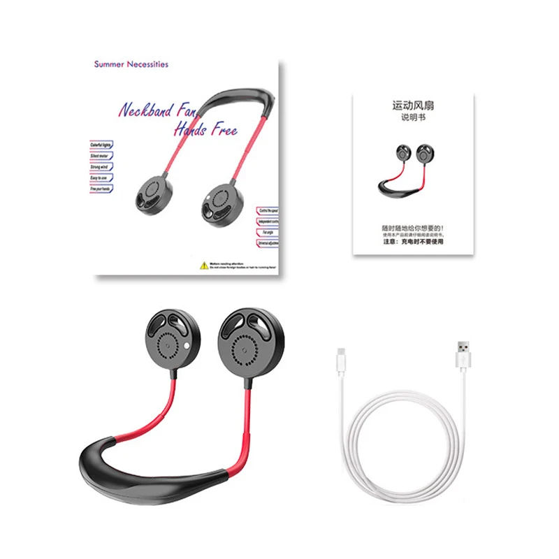 Дизайн без рук: вентилятор с шейным ободком создан с дизайном без рук, вы можете повесить вентилятор вокруг шеи и взять его везде, не будет чувствовать усталость или дискомфорт, когда вы повесите вентилятор в течение длительного времени.
