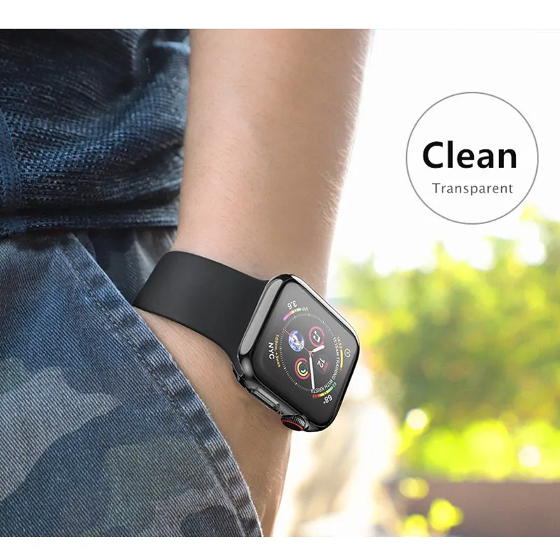Чехол для Apple watch 5 4, чехол 44 мм 40 мм iwatch, чехол 42 мм 38 мм, полная прозрачная защитная пленка из ТПУ, бампер для Apple Watch 5 4 3 2 1, аксессуары