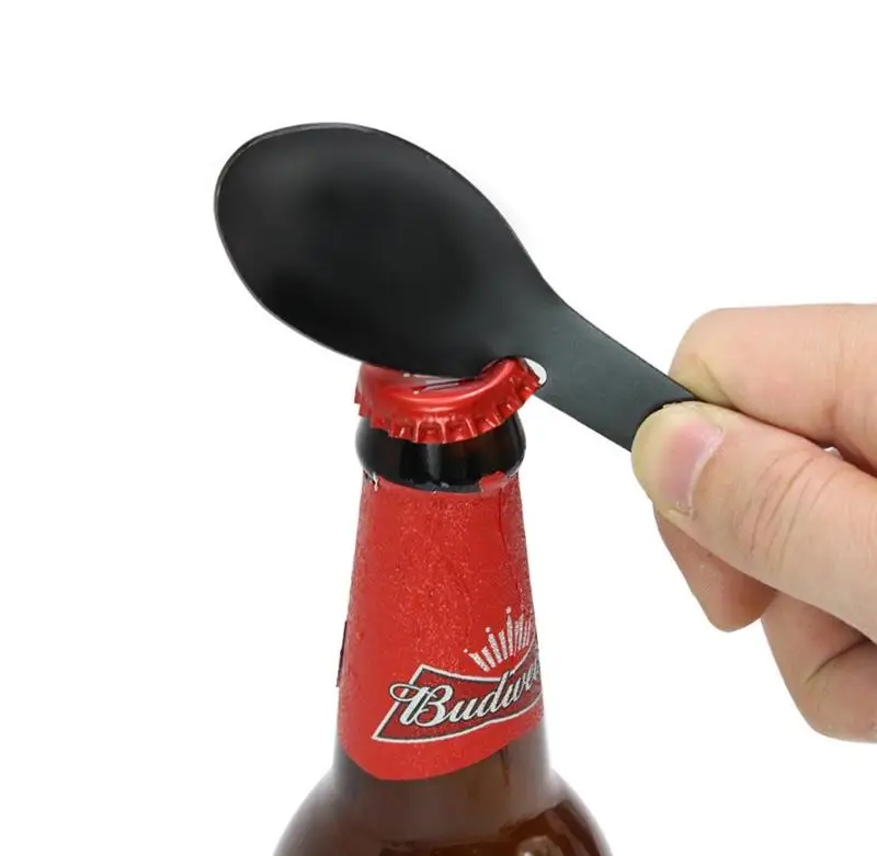Multi-functional, great for outdoor travel, environmental and safe to use. Within a spoon, fork, bottle opener, Can opener and Sawtooth cutter.