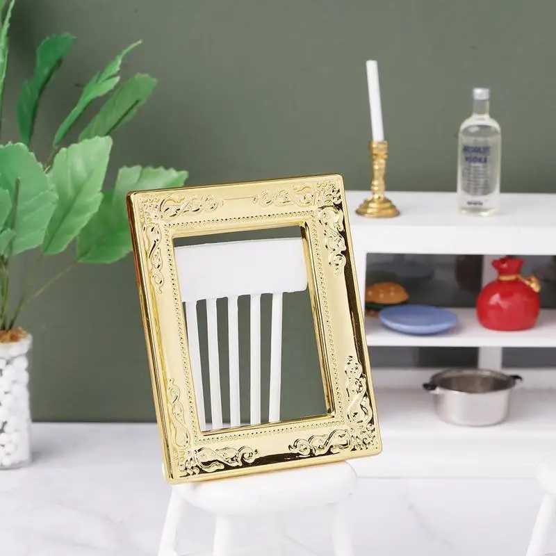 1/12 Масштаб Кукольный домик аксессуары имитация мини квадратная Золотая фоторамка модель DIY кукольный домик мини мебель сцена украшение