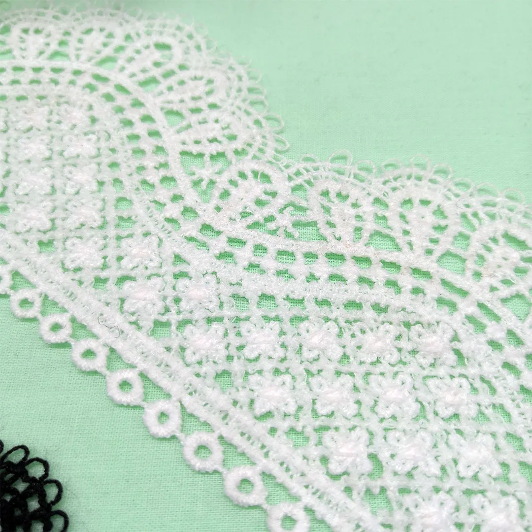Состояние: 100% новое и высокое качество Материал: полиэстер, кружево из молочного шелка Размер: около 7 см Цвет: белый, черный Использование продукта: для одежды, ткани, корсажа, домашнего текстиля В комплект входит: 5 ярдов/15 ярдов кружева Внимание: из-за освещения и других факторов цвет товара может немного отличаться от цвета на фотографиях. Спасибо за понимание.