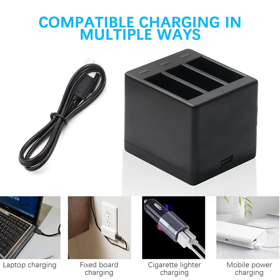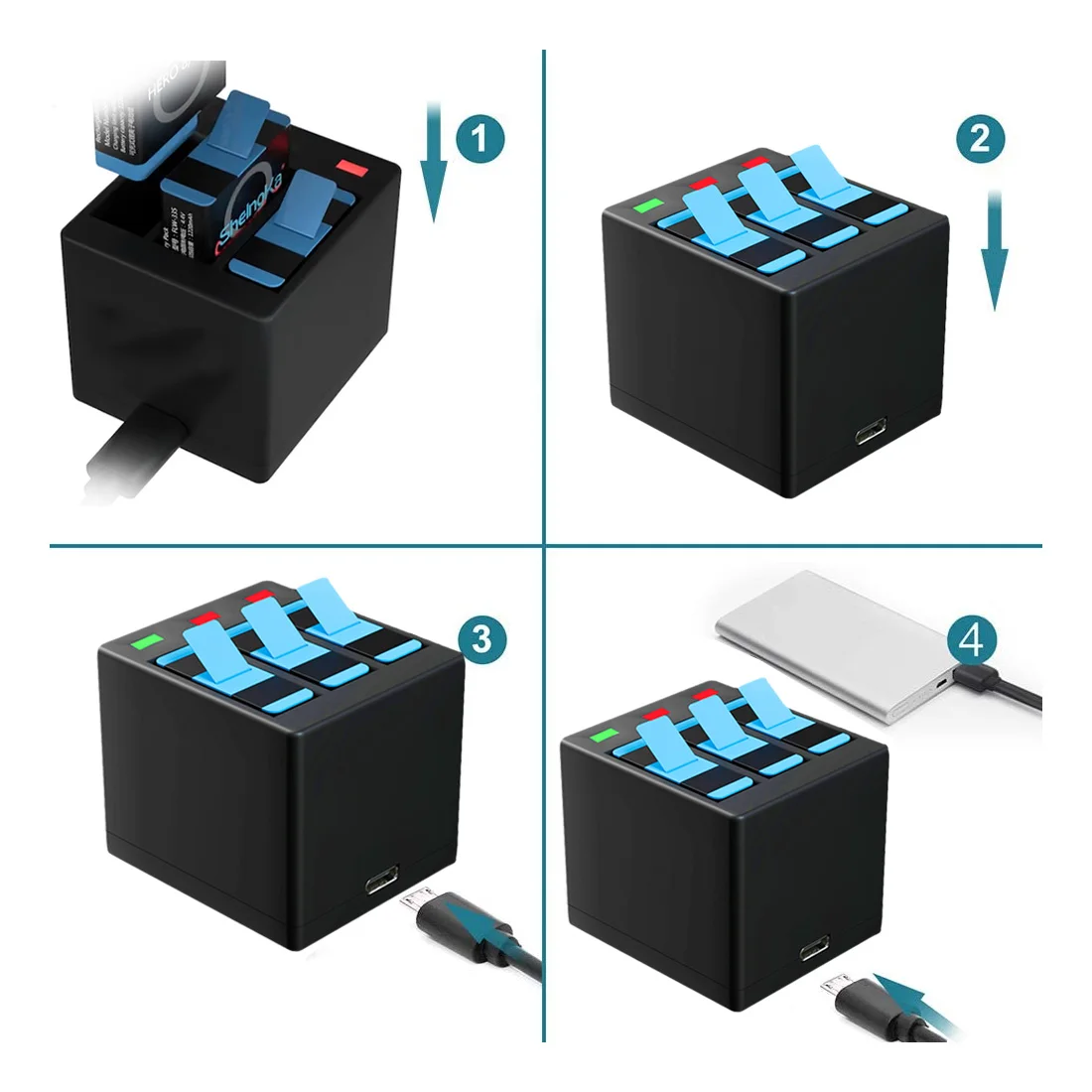 Упаковка 1: 2 шт. * черный аккумулятор, 1 шт. * тройное зарядное устройство;