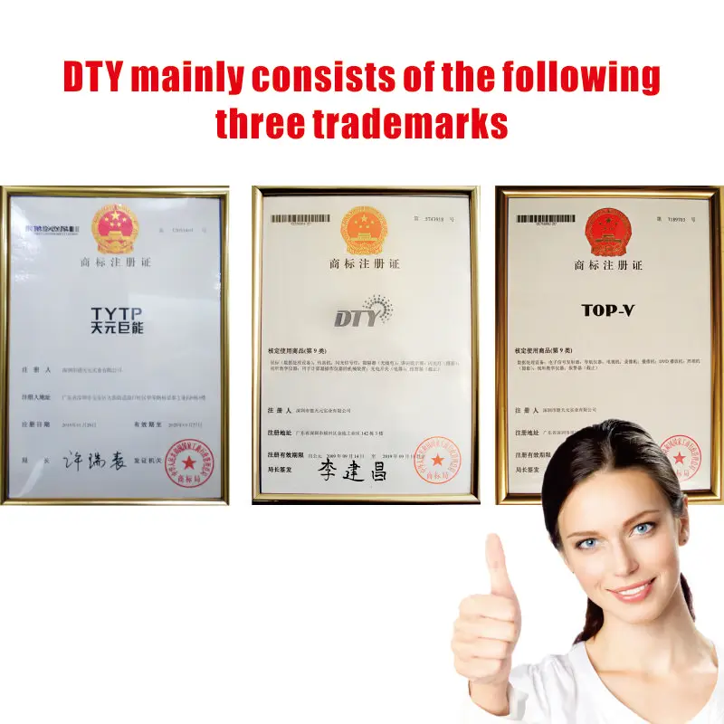 Наша фабрика DTY (Шэньчжэнь) Industrial Co., Ltd основана в 1996 году. С более чем 15 лет опыта, вытянутая текстурированная нить, превратился в высокотехнологичные компания, специализирующаяся на цифрового видео Регистраторы успешно. Наш ассортимент включает в себя мобильный видеорегистратор, Камеры, беспроводной видеорегистратор. С нашим опытным профессиональным R & D отделом, мы также доступны для предоставления OEM и ODM услуг для покупателей. Мы поставляем высококачественную продукцию нашим клиентам по всему миру, а также отличное обслуживание клиентов, которое завоевало нас большой репутацией. И долгосрочное сотрудничество-это то, что мы ожидаем.