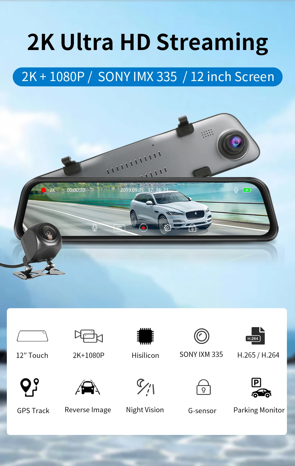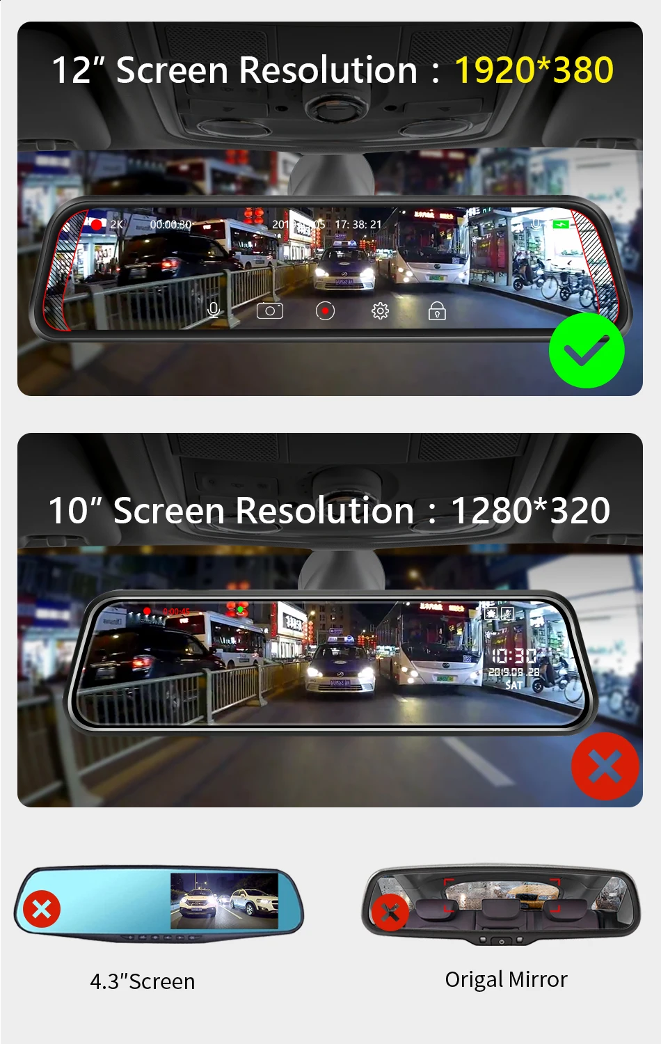 Полноразмерный экран 12 дюймов, более широкое поле зрения, меньше слепых пятен, более удобное и безопасное вождение
