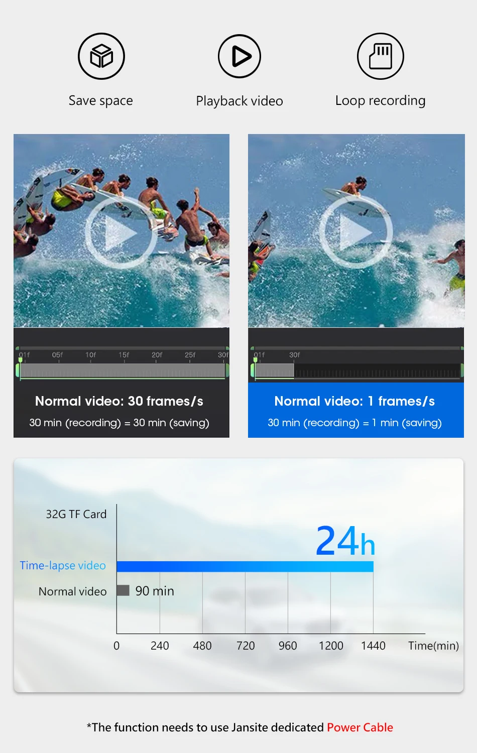 Видео с таймером можно непрерывно записывать в течение 48 часов, более безопасно и удобно
