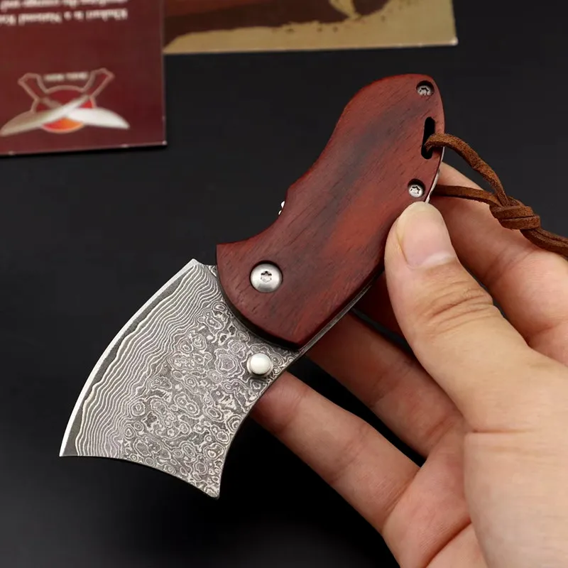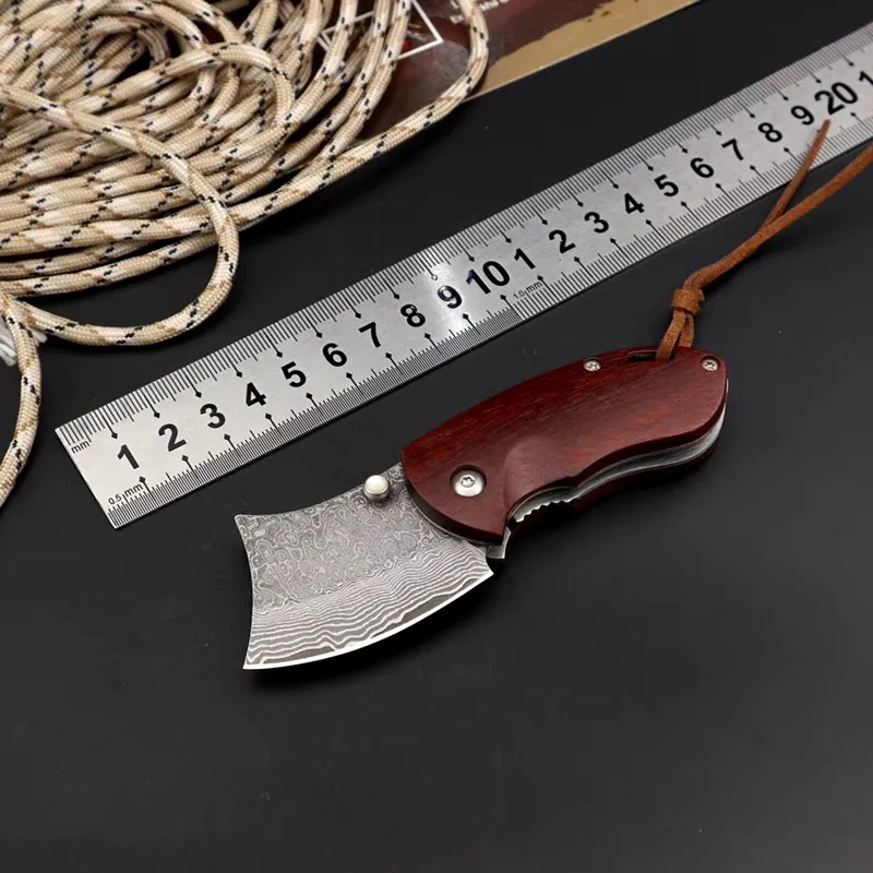 Дамасский складной нож, красные ножи с ручкой из сандалового дерева, острый Мини карманный нож для спасения, Подарочный нож, инструменты для ключей
