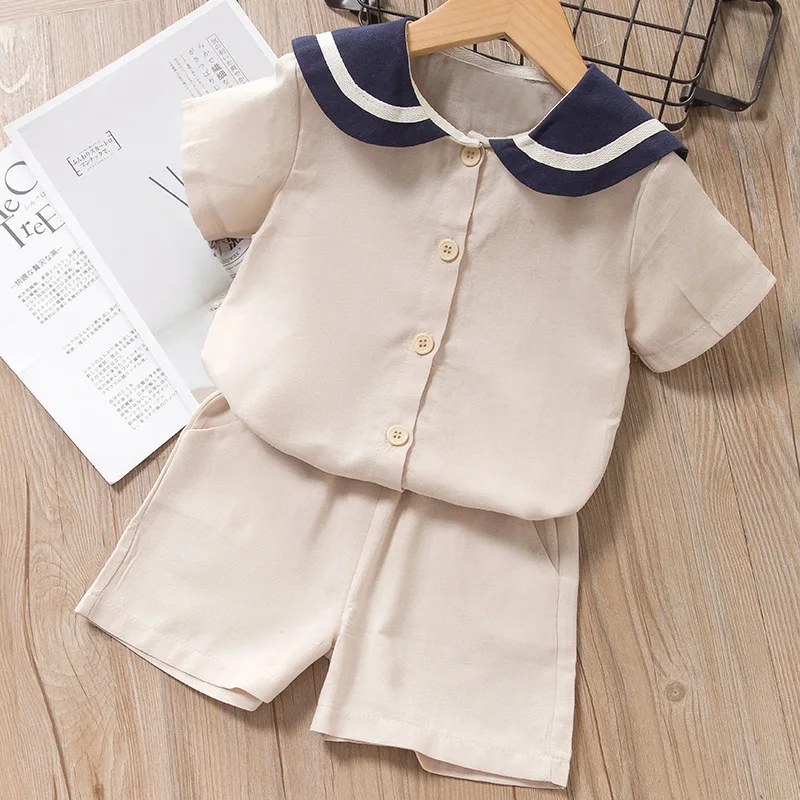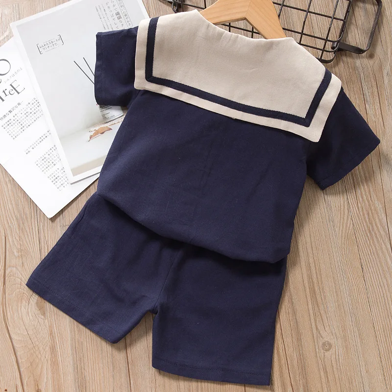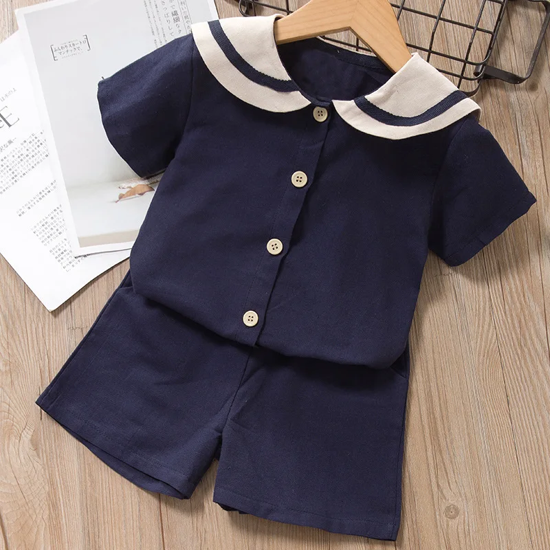 Детский комплект для девочек и мальчиков, темно-синяя хлопковая рубашка с короткими рукавами + шорты, Детский костюм модная эксклюзивная летняя одежда для детей 3-7 лет