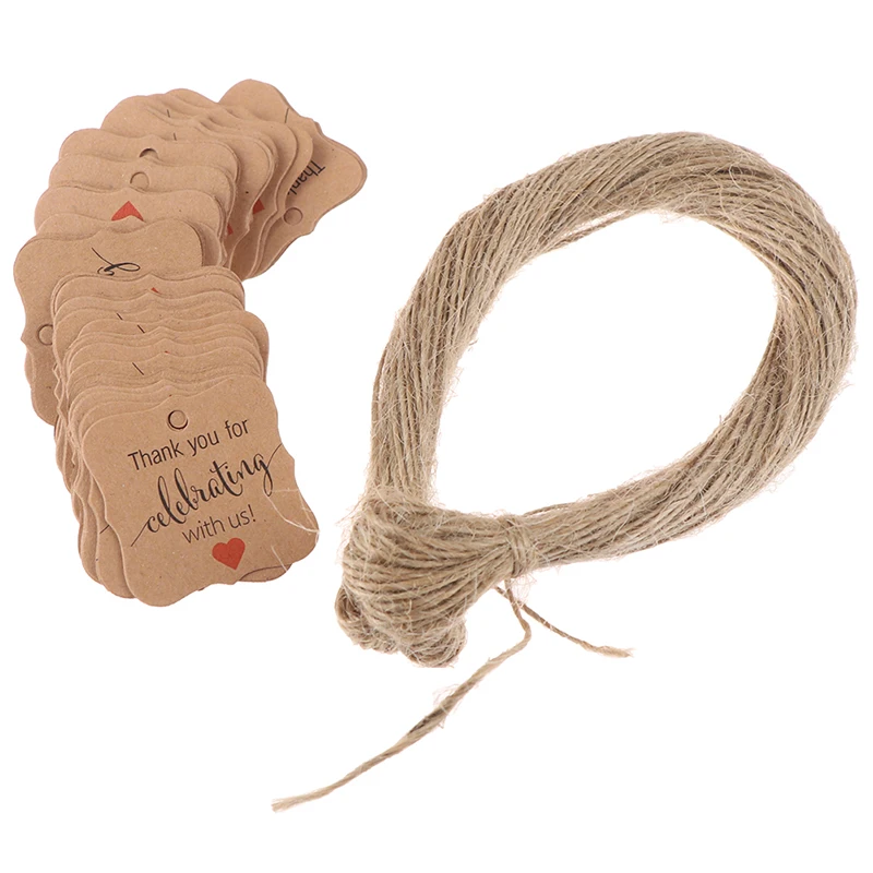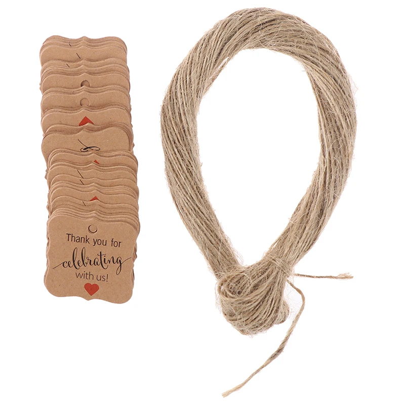 Коричневая крафт-бумага, бумажная бирка с 20 метровым джутовым шпагатом