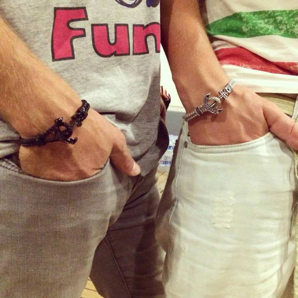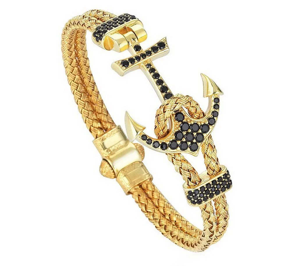 Новые браслеты на запястье и браслеты для мужчин, браслет из полистоуна, золото, нержавеющая сталь, якорь, черные кожаные браслеты на запястье, ювелирные изделия