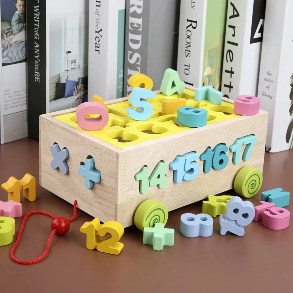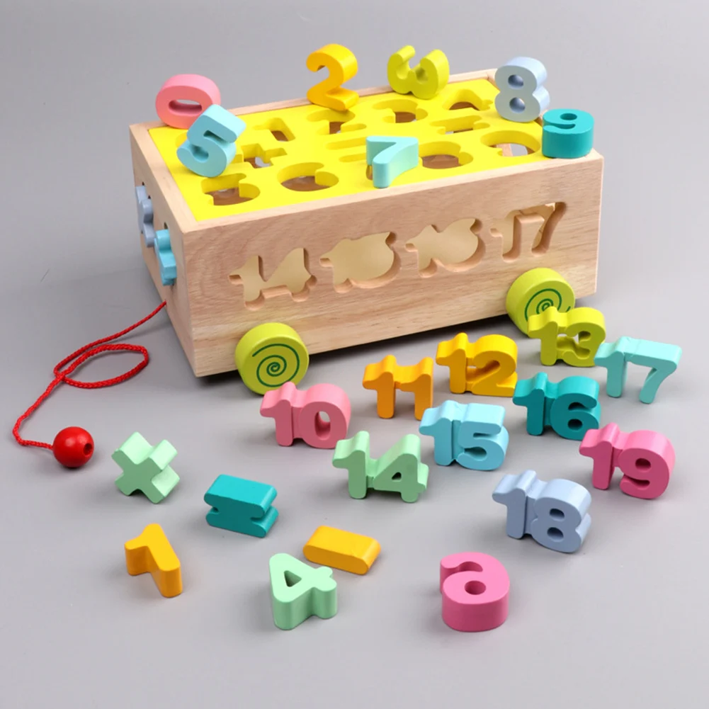 Деревянные тянущиеся цветные блоки в форме цифр, обучающие игрушки для детей