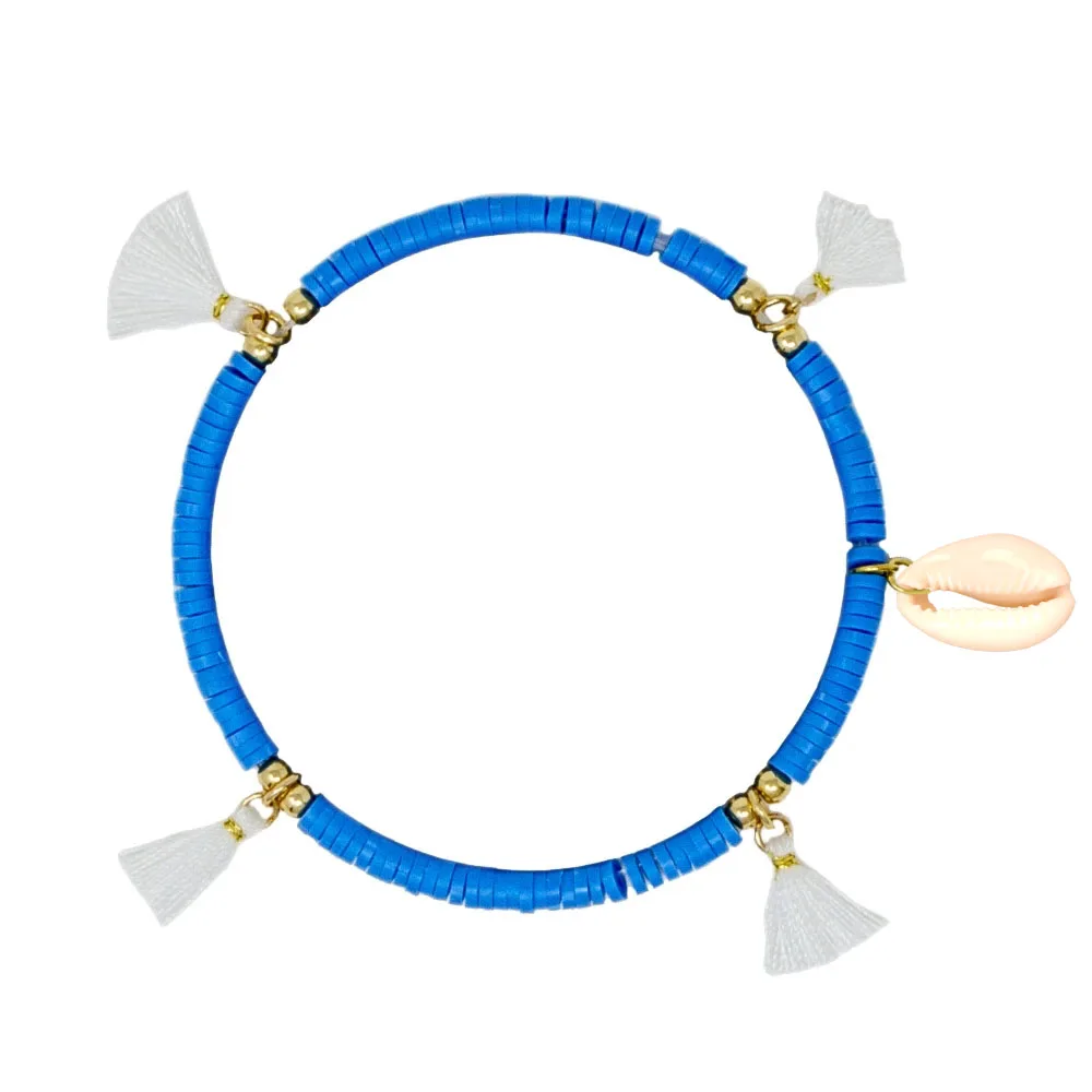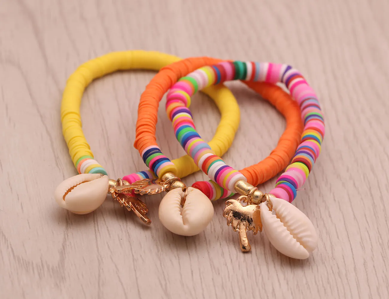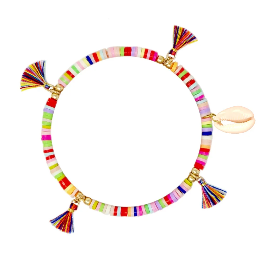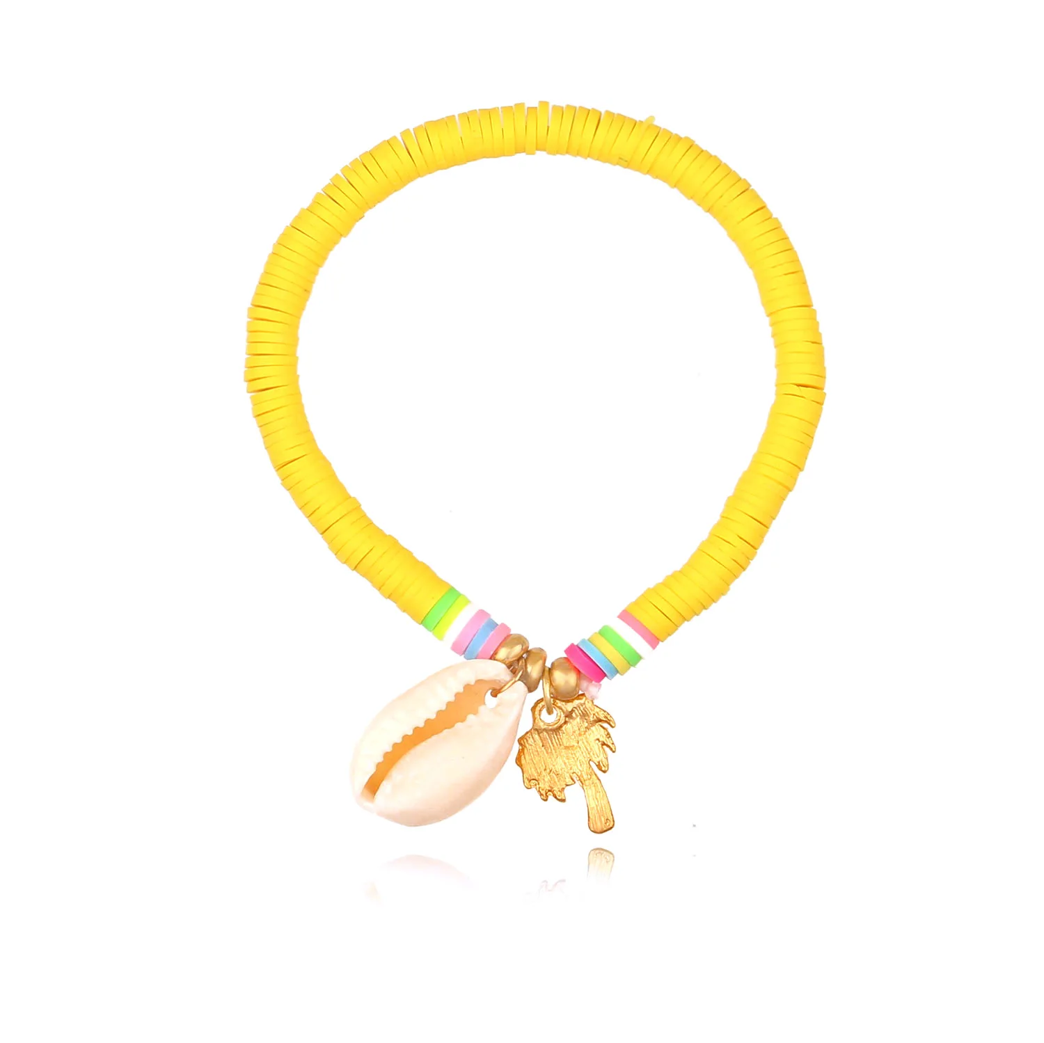 Богемные многоцветные полимерные глиняные бусины Heishi Cowrie Seashell, растягивающийся браслет в виде пальмы, для женщин, для любителей моря, для серфинга, ювелирное изделие, подарок