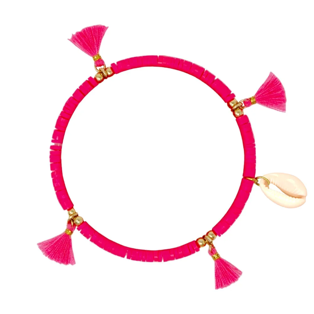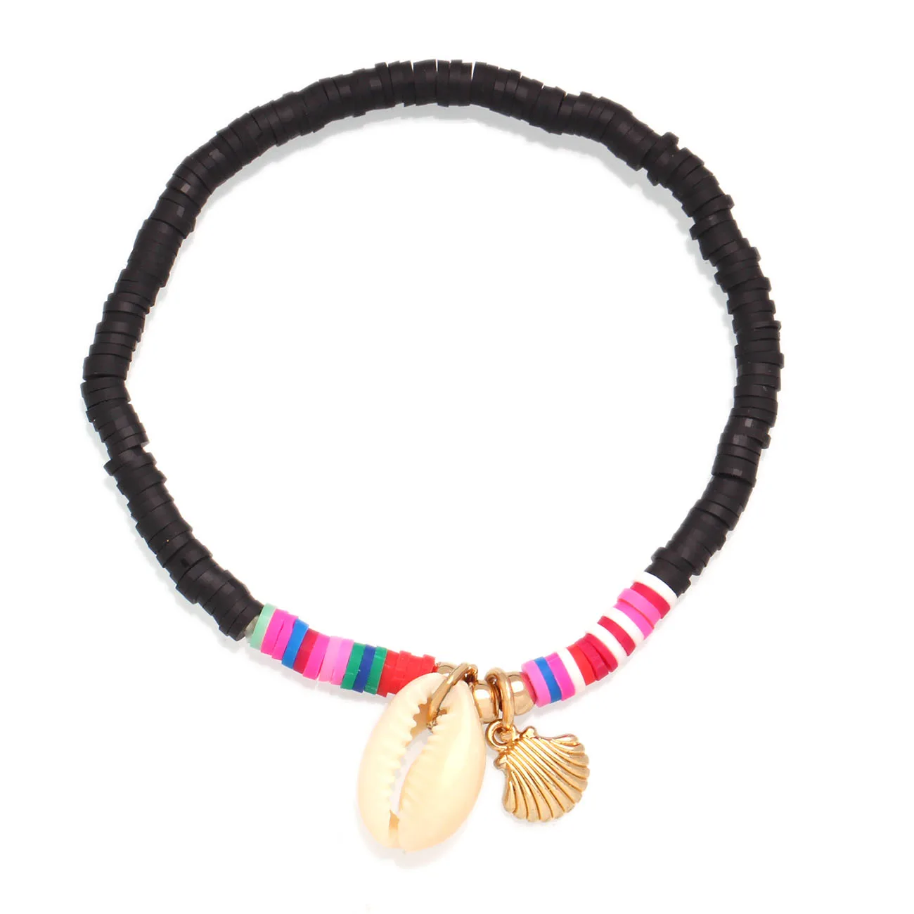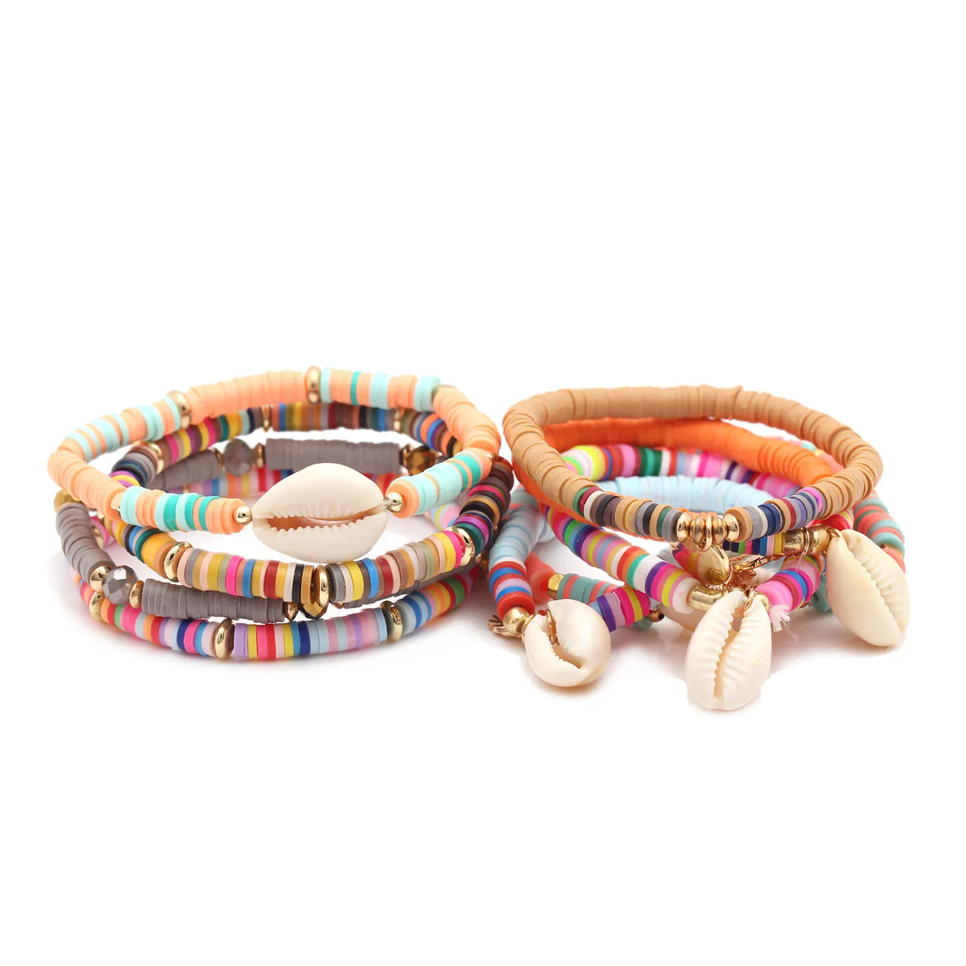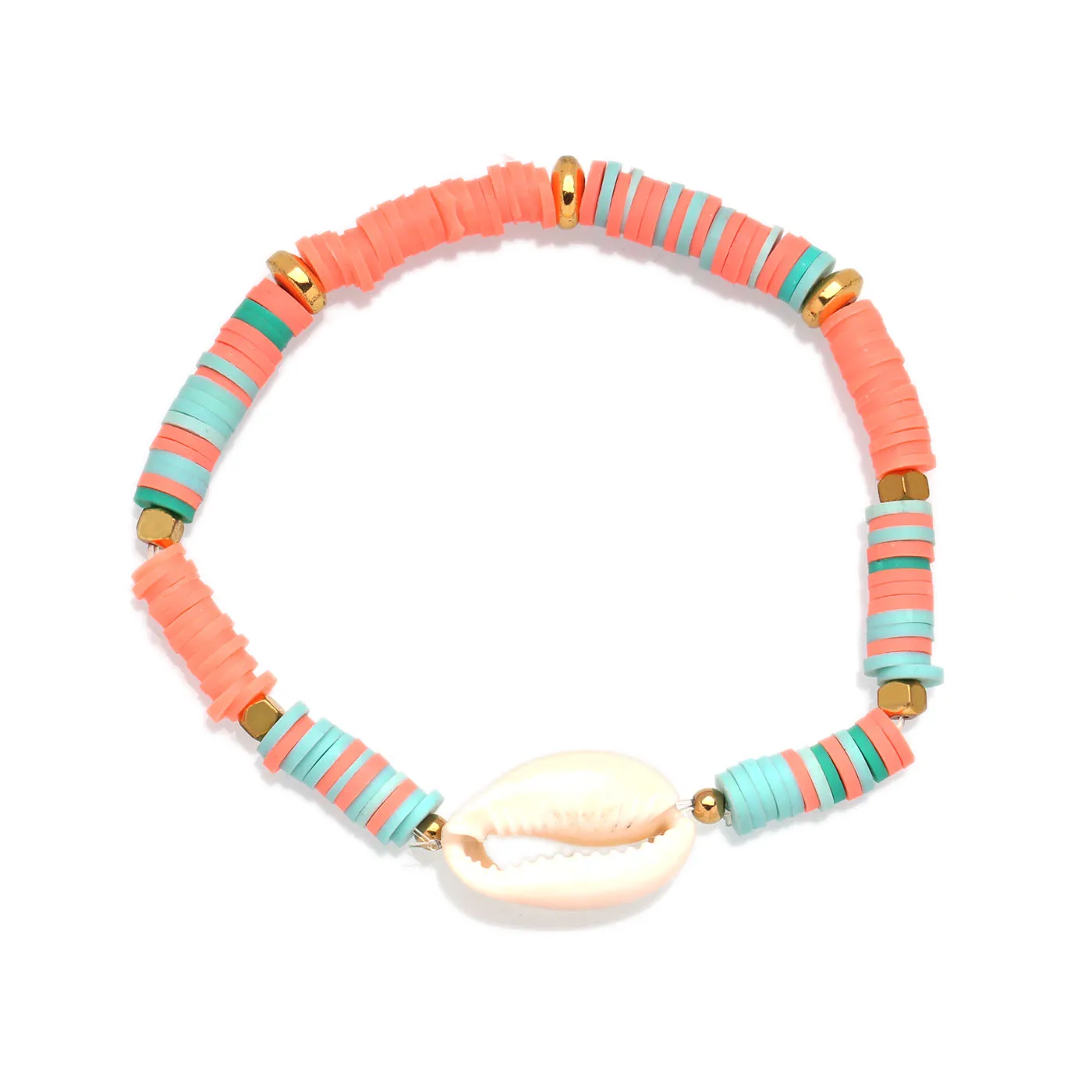 Богемные многоцветные полимерные глиняные бусины Heishi Cowrie Seashell, растягивающийся браслет в виде пальмы, для женщин, для любителей моря, для серфинга, ювелирное изделие, подарок