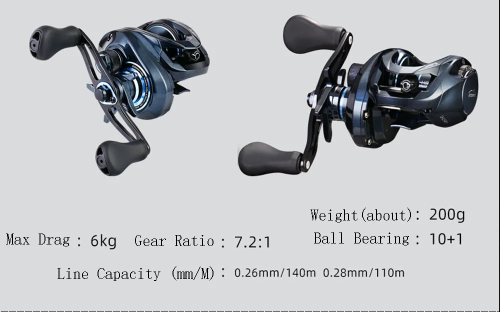 Информация о продукте: Передаточное отношение: 7,2: 1 Сила тяги: 6 кг Шариковый подшипник: 10 + 1 Вес: 200 г Емкость лески: 0,26 мм/140 м; 0,28 мм/110 м
