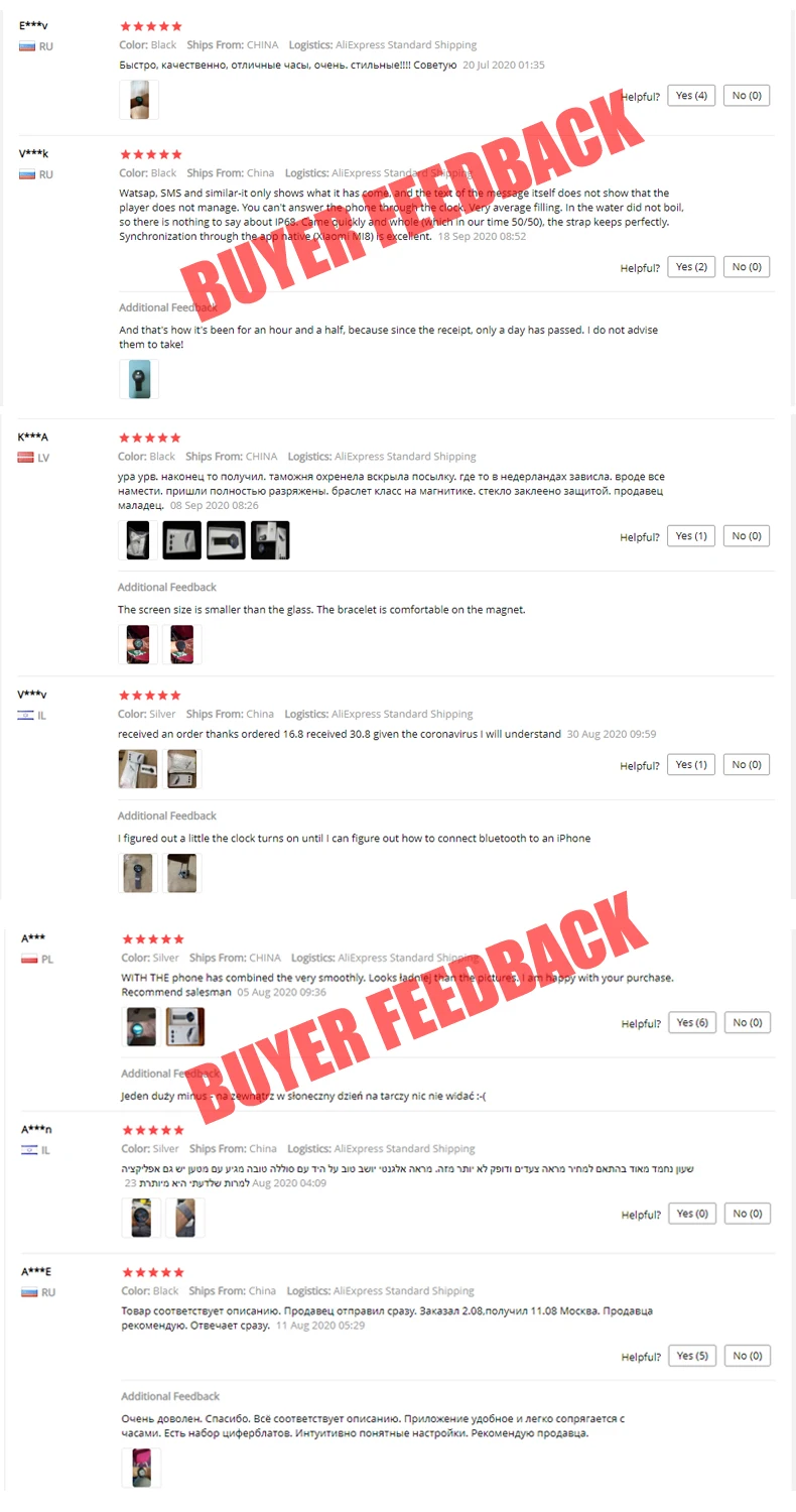 ВОПРОСЫ-ОТВЕТЫ: 1.Что делать, если экран умных часов завис. -> В общем случае зависания экрана часов не будет. Если это произошло, не волнуйтесь, сначала разрядите аккумулятор, затем полностью зарядите его, вы можете снова перезагрузить эти часы. 2.Можно ли регулировать яркость экрана умных часов? -> Да, конечно. Экран часов по-прежнему хорошо виден при ярком и далеком свете дня. 3.Могу ли я плавать со своими умными часами? -> Конечно, но часы не могут касаться горячей воды. Горячая вода может повредить датчик часов. 4. На сколько хватает заряда батареи? -> Емкость аккумулятора 160 мАч, в режиме ожидания 7-10 дней. 5.Сколько времени нужно для полной зарядки часов? -> Около 2-3 часов 6. Есть ли гарантия на товар? -> Если вы обнаружите, что товар имеет проблемы с качеством в течение 7 дней после получения товара, вы можете связаться с нами, чтобы решить проблему. Если проблема не может быть решена, мы полностью вернем вам деньги или повторно отправим вам новые умные часы. Не волнуйтесь, вы не потеряете свои деньги. ж обещание. Не оставляйте отрицательный отзыв, прежде чем связаться с нами для решения проблемы, в противном случае мы не предоставляем послепродажное обслуживание!