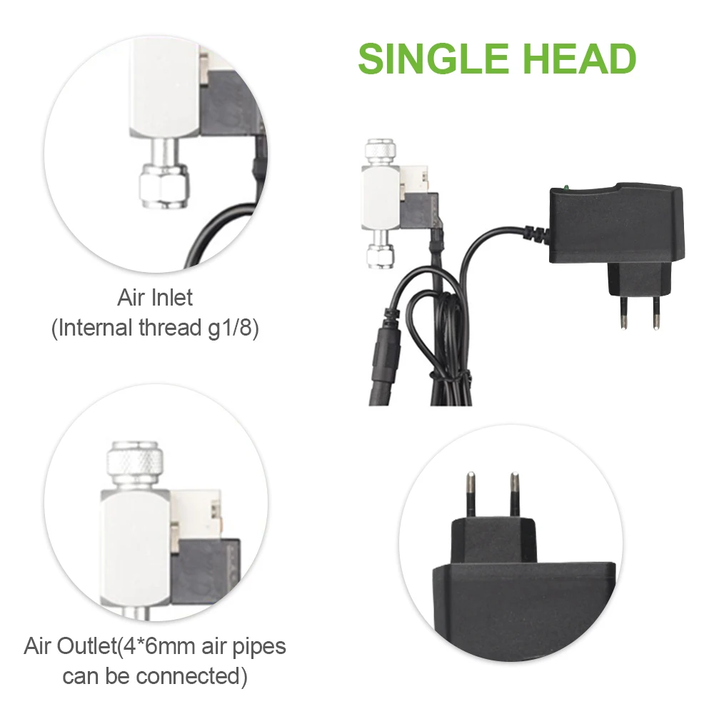 Интерфейс обрезного клапана (если не интерфейс G1/8) не может быть подключен к одной головке, можно купить только двухголовый Соленоидный клапан и воздушную трубу 4*6 мм.