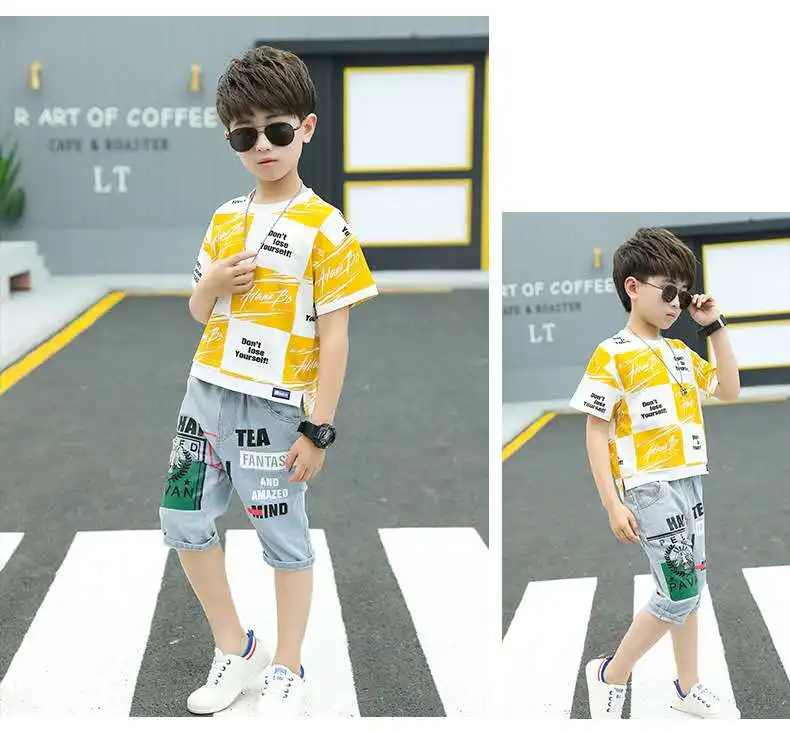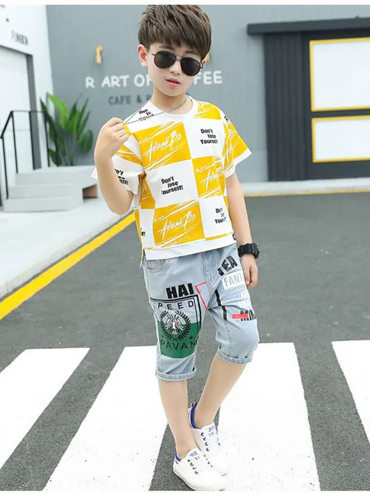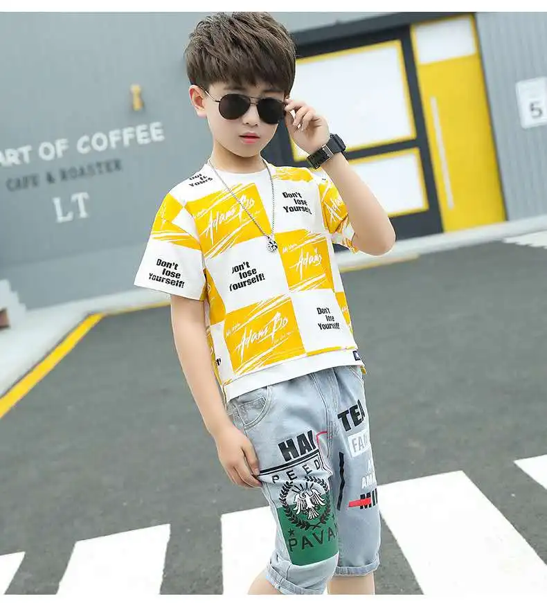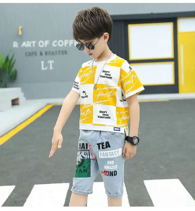 Детская футболка для больших мальчиков, Модный летний комплект одежды для мальчиков 2020, футболка + штаны, шорты, детские комплекты одежды для мальчиков 2-13 лет