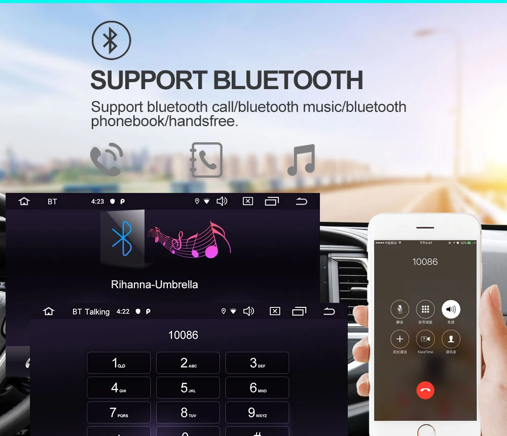 -Встроенный Bluetooth 4,0, hands-free, телефонная книга, музыка