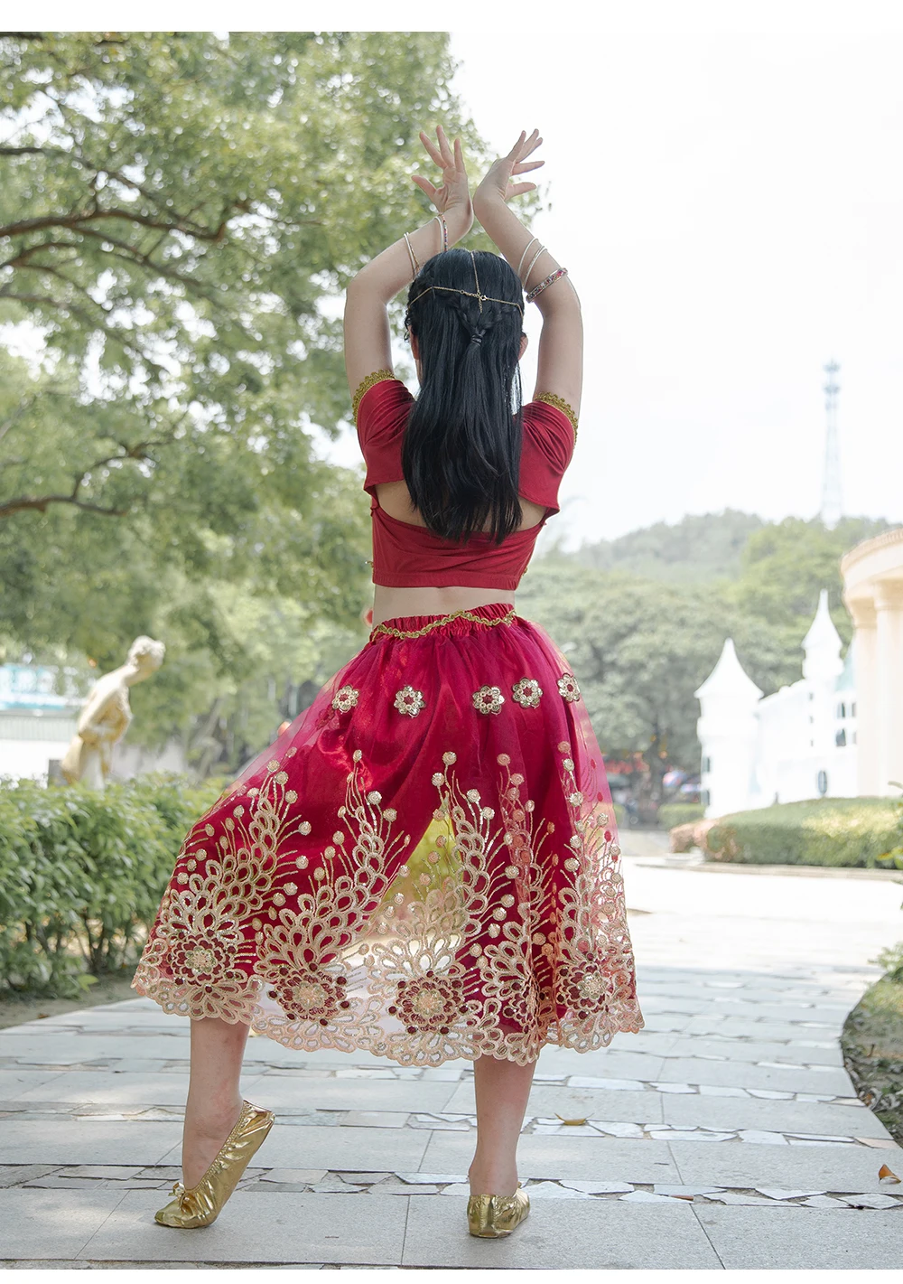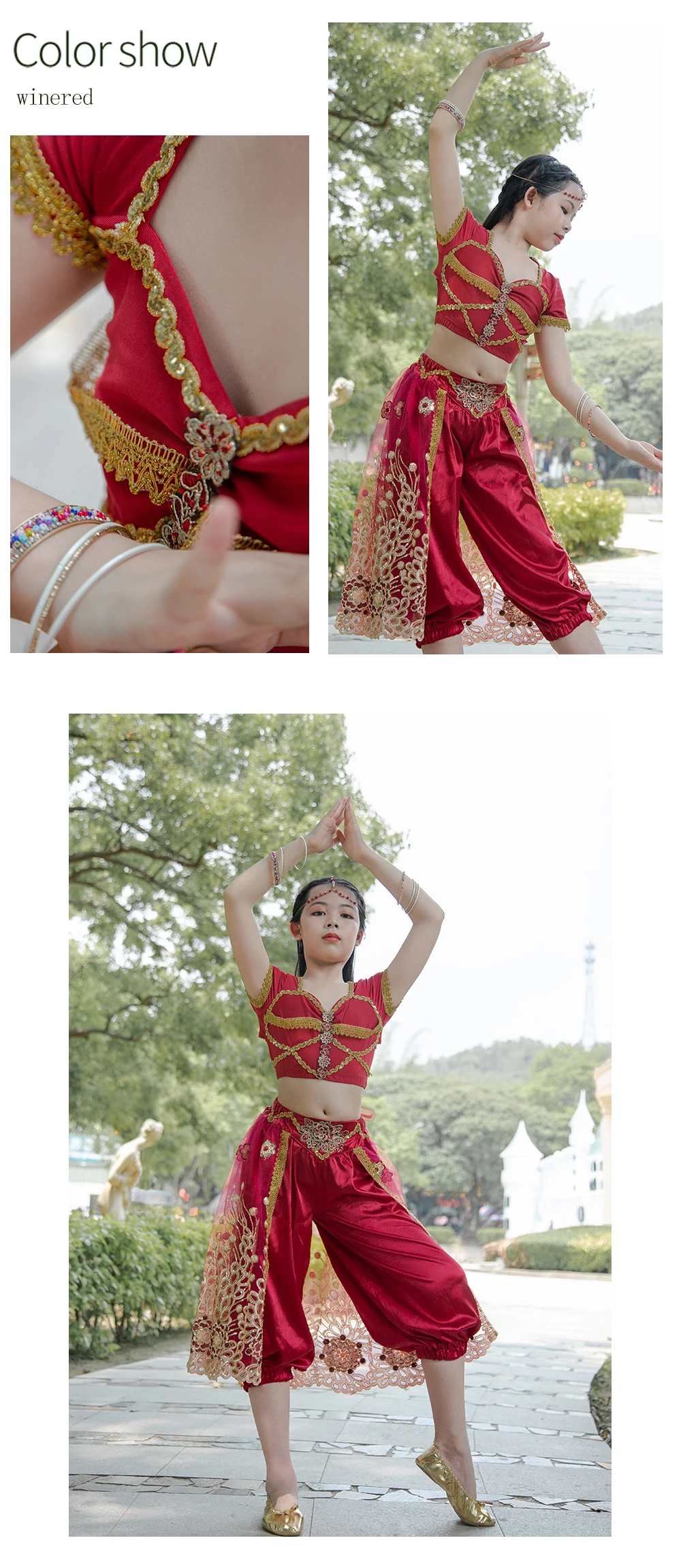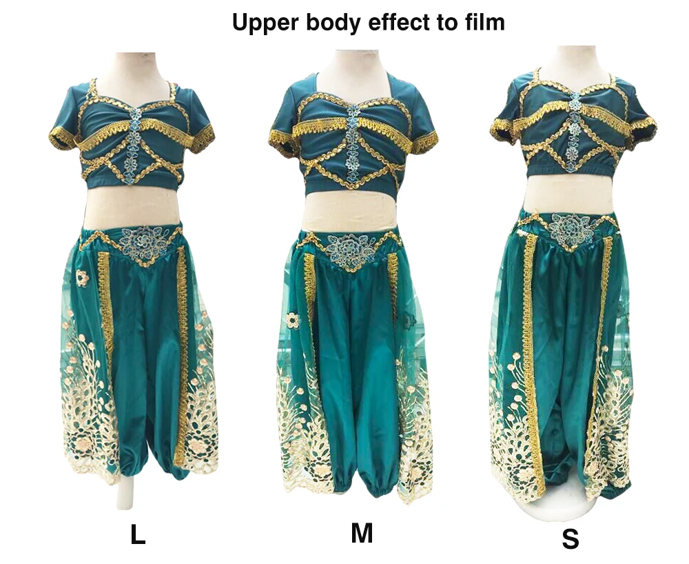 Ткань: бархат, сетка, хлопок. Размер: S, M, L. Цвет: зеленый, красный. Описание: карнавал, танцевальное шоу, выступления на сцене, вечерние наряды, праздничная одежда, повседневная одежда, церемония, танец живота, Болливуд, индийский танец, сари, Хэллоуин и т. д. Товар включает: 3 шт.: Топ + штаны + головной убор. Советы: Пожалуйста, проверьте таблицу размеров перед заказом.