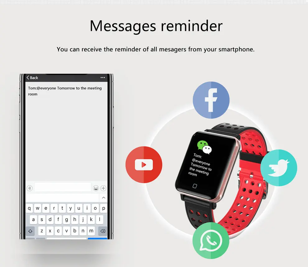 Уведомление: (IOS/Android) Уведомление wolud приходит для вызова, сообщения, wechat,whatsapp и т. д. устройство будет гореть с вибрацией.