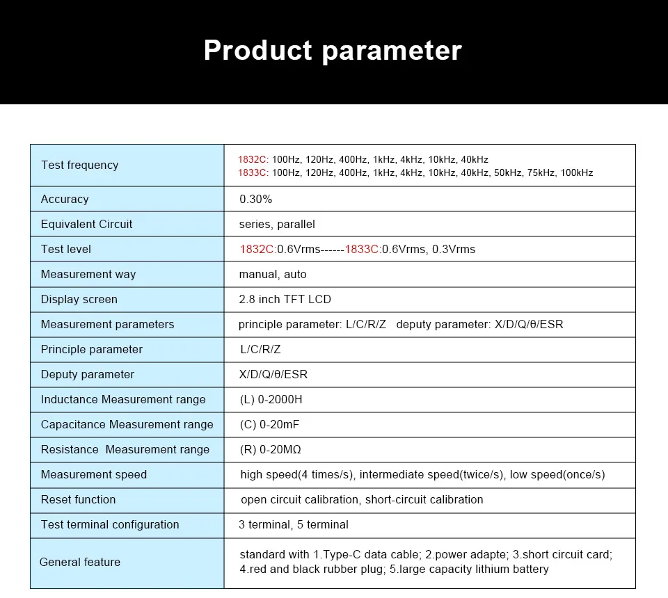 Hantek1832C/1833C Цифровой Измеритель LCR Портативный Ручной измерительный прибор индуктивность емкость сопротивление измерительный прибор 2,8 дюйма TFT LCD