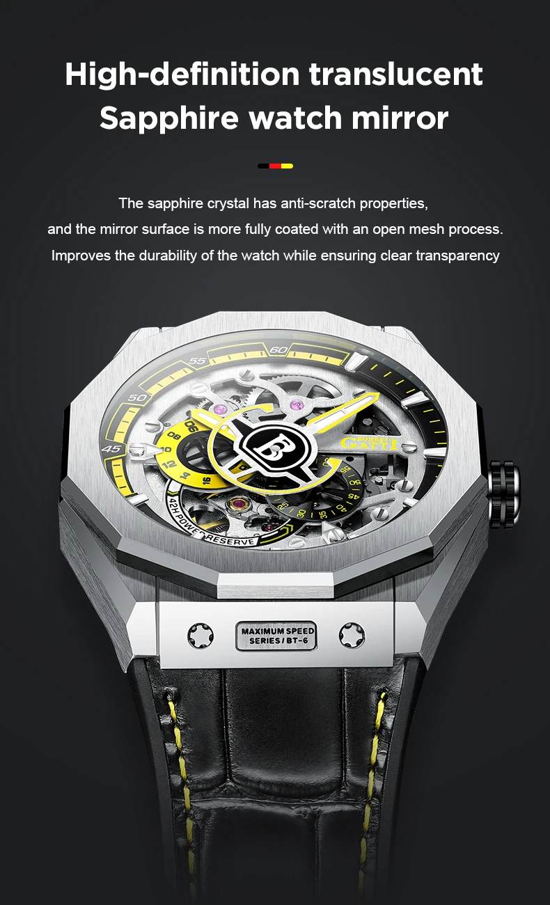 Известные мужские механические часы GATTI Роскошные Водонепроницаемые кожаные автоматические часы резиновые спортивные мужские наручные часы Relogio Masculino Бренд: GATTI Модель: BG7601 Очки: сапфир Скорость PHANTOM Параметры Размер: 11 1/2'' Толщина: 5,67 мм Драгоценный камень: 21 Частота вибрации: 21600/ч Точность времени:-10 + 30 с/день Запас хода: 42 ч Функция: Автоматическая обмотка/руководство Вал обмотки/24 часа с мультиигловой системой/Позиция 1 Банкомат: 5 Движение: Citizen Материал ремешка: кожа, резина Чехол: нержавеющая сталь Основная особенность: 100% новый ярлык и высокое качество 5 атм/50 м Водонепроницаемость (поддержка холодного душа и плавания, не используйте часы под водой. Не поддерживайте горячую воду)