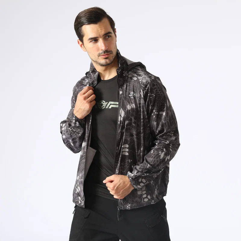 Легкая летняя Водонепроницаемая быстросохнущая тактическая кожаная куртка для мужчин, плащ с капюшоном, тонкая ветровка, Солнцезащитная армейская военная куртка