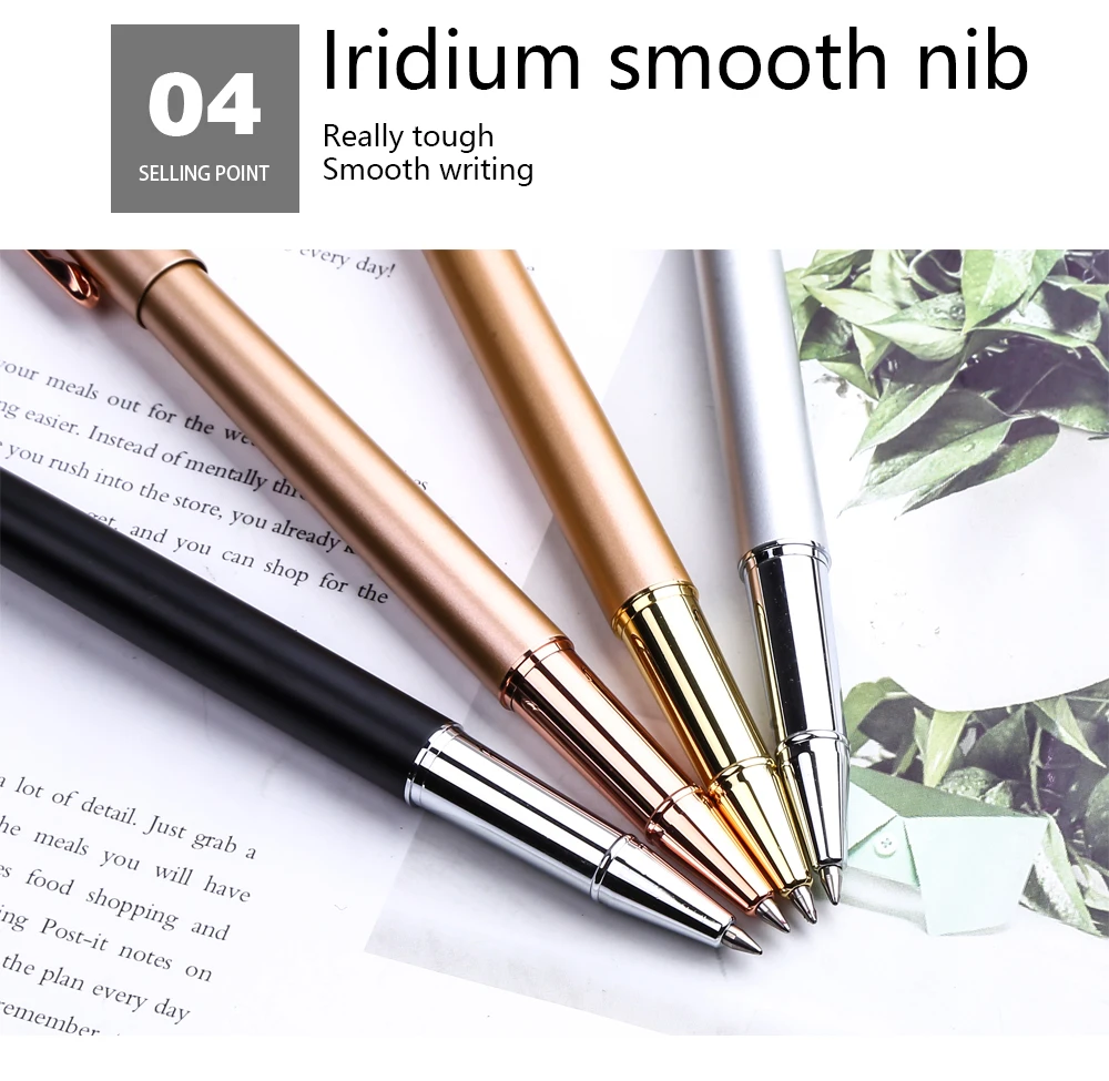 1, стиль: черный, белый, золотой, серебряный, высокое качество, роскошный офисный бизнес, Пользовательский логотип, гелевая ручка 2. Материал: металлическая гелевая ручка 3. Спецификация: вес: 24 г Размер: 0,8x13,6 см Чернила: синий/черный * (может быть в подарочной коробке) 4. Особенность: черный роскошный изящный Милый Винтажный журнал Facny Cool Journal, гладкий инструмент для письма, распродажа товаров, рекламная партия 5. Функция: подарок на свадьбу, подарок на день рождения, художественная школа, офис, приз, фестиваль 6, изготовление на заказ: Да, логотип настроен с MOQ:<100, плата за изготовление на заказ может быть обсуждена; ≥ 100, плата за изготовление на заказ является бесплатной. Логотип-один из трех форматных файлов (PS(Photoshop), AI(Adobe Illustrator), CD(CorelDraw). Отправьте нам свой логотип, и мы разработаем и изготовим для вас.