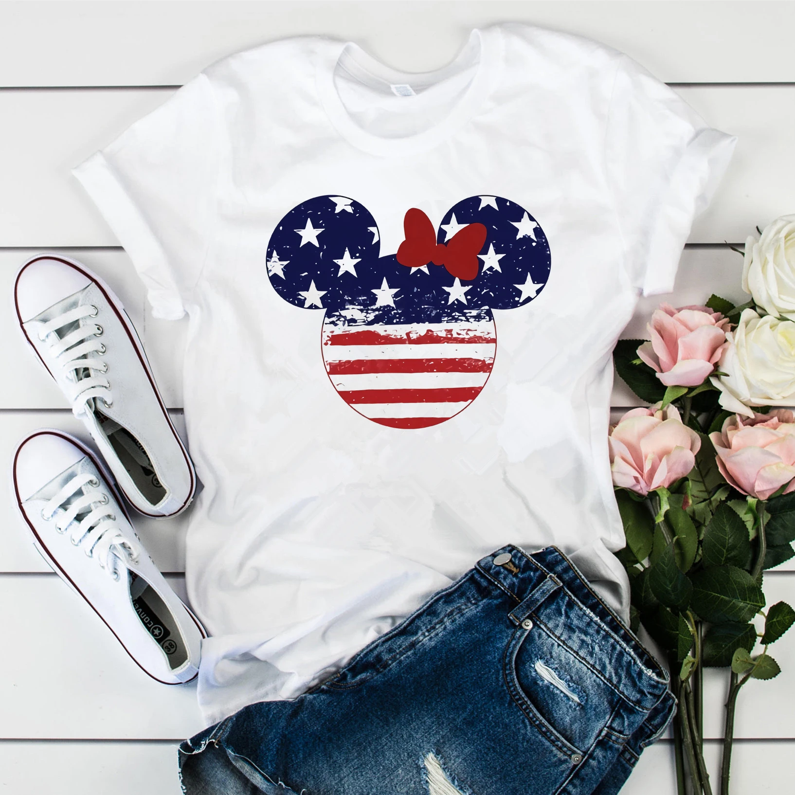 Забавные Рубашки 4 июля футболка с изображением милой Минни для Дня независимости футболка с изображением американского флага одинаковая семейная футболка